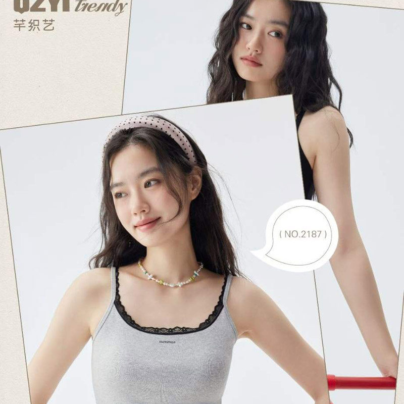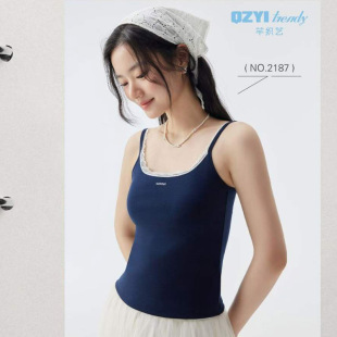 芊织艺2026新款 吊带海盐织夏全棉免穿文胸细带内搭2187 女士胸垫款
