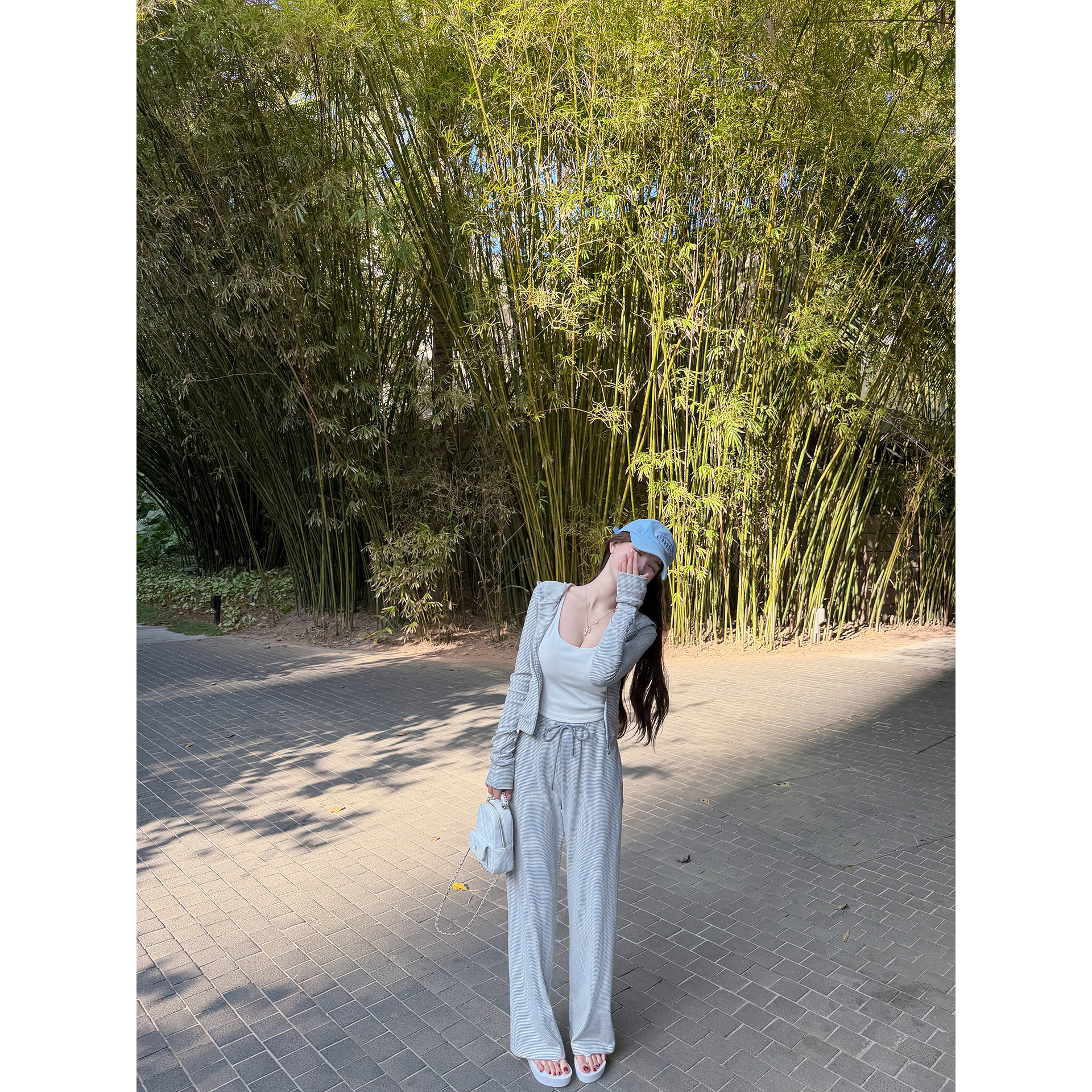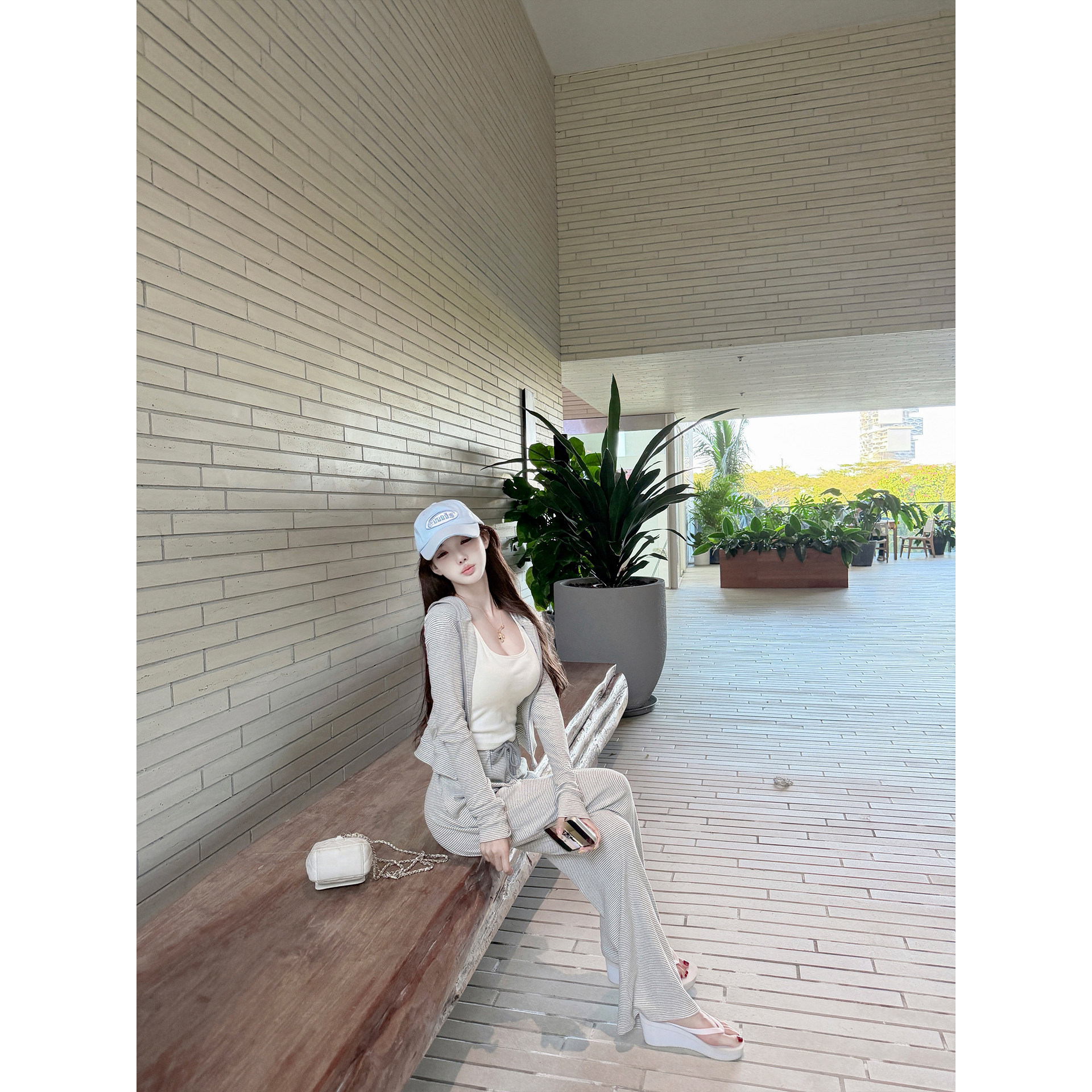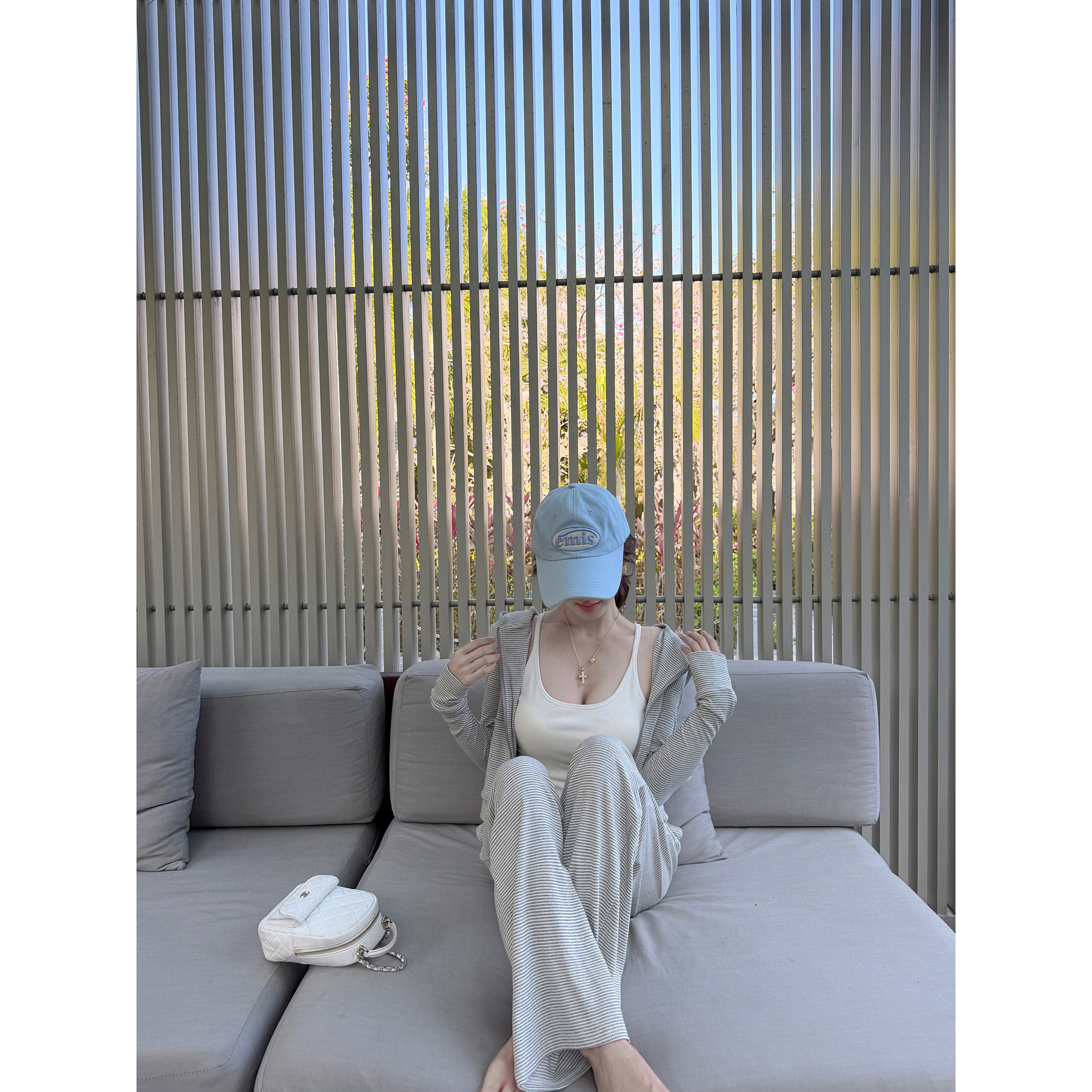 吊带裤 若语定制 休闲风开衫 95舒适棉防晒套装 子三件套 条纹天菜组