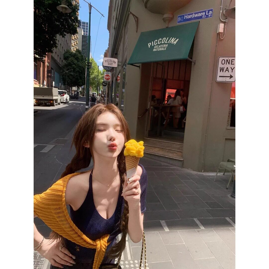 打底上衣 修身 纯欲露背挂脖吊带小背心女夏季 外穿搭配撞色披肩短款