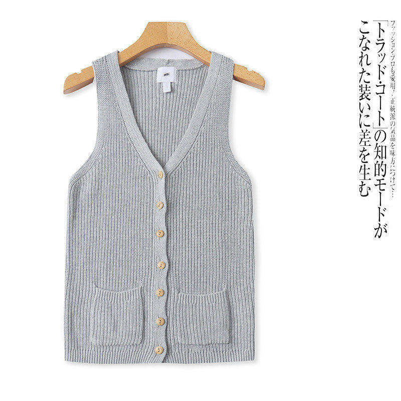百搭坎肩马甲 单排口修身 U8563外贸欧美女士针织马夹新款 V领无袖