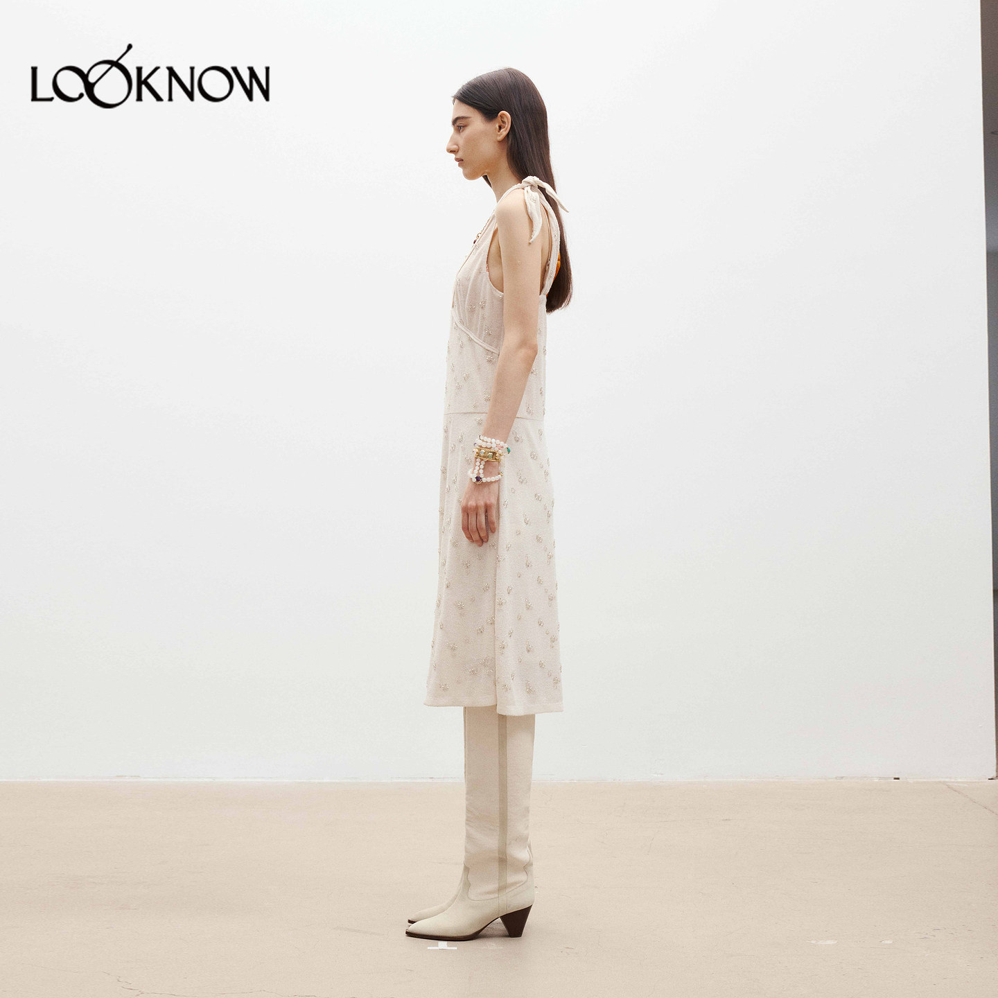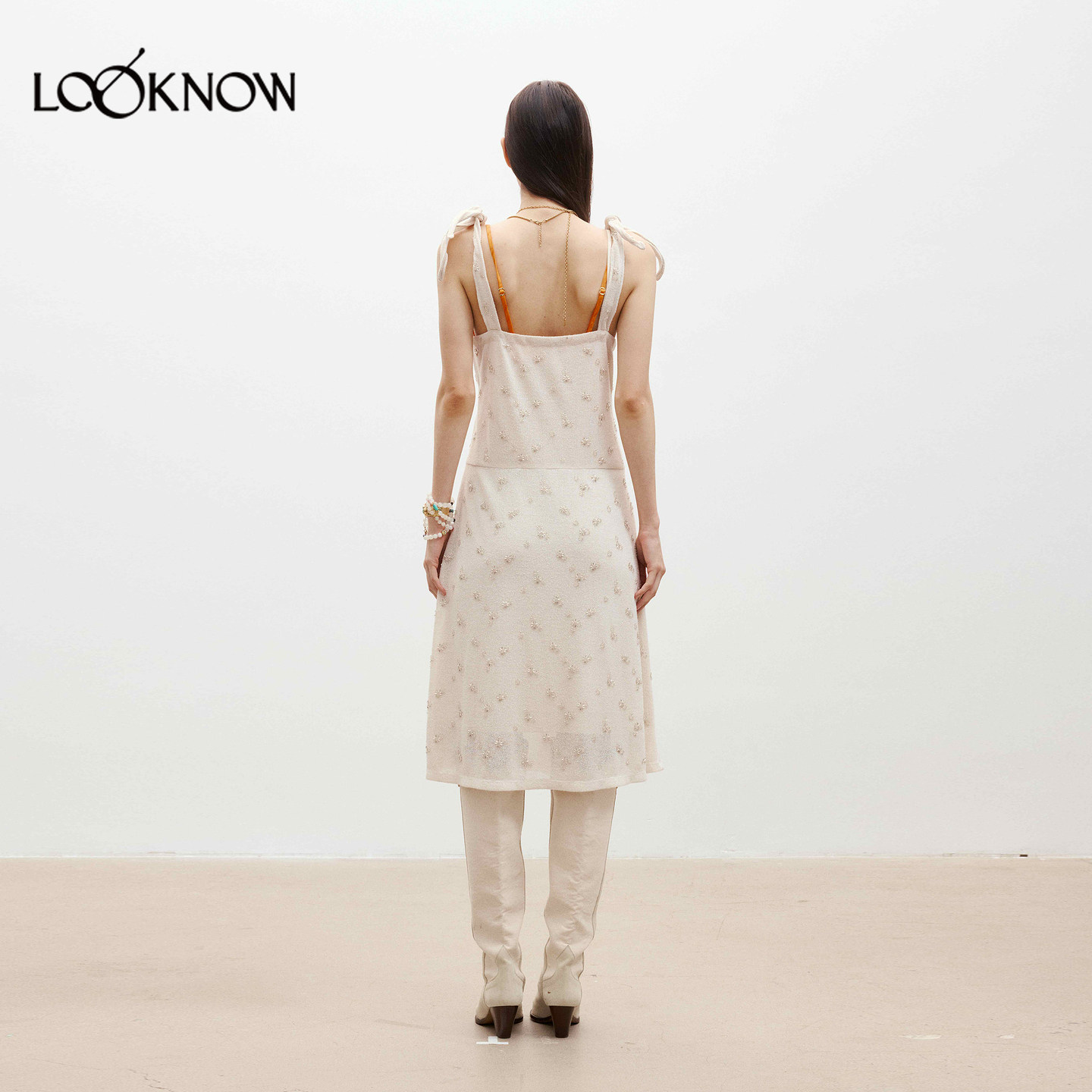 订珠造型肩带连衣裙 LOOKNOW26春夏新品 medium well