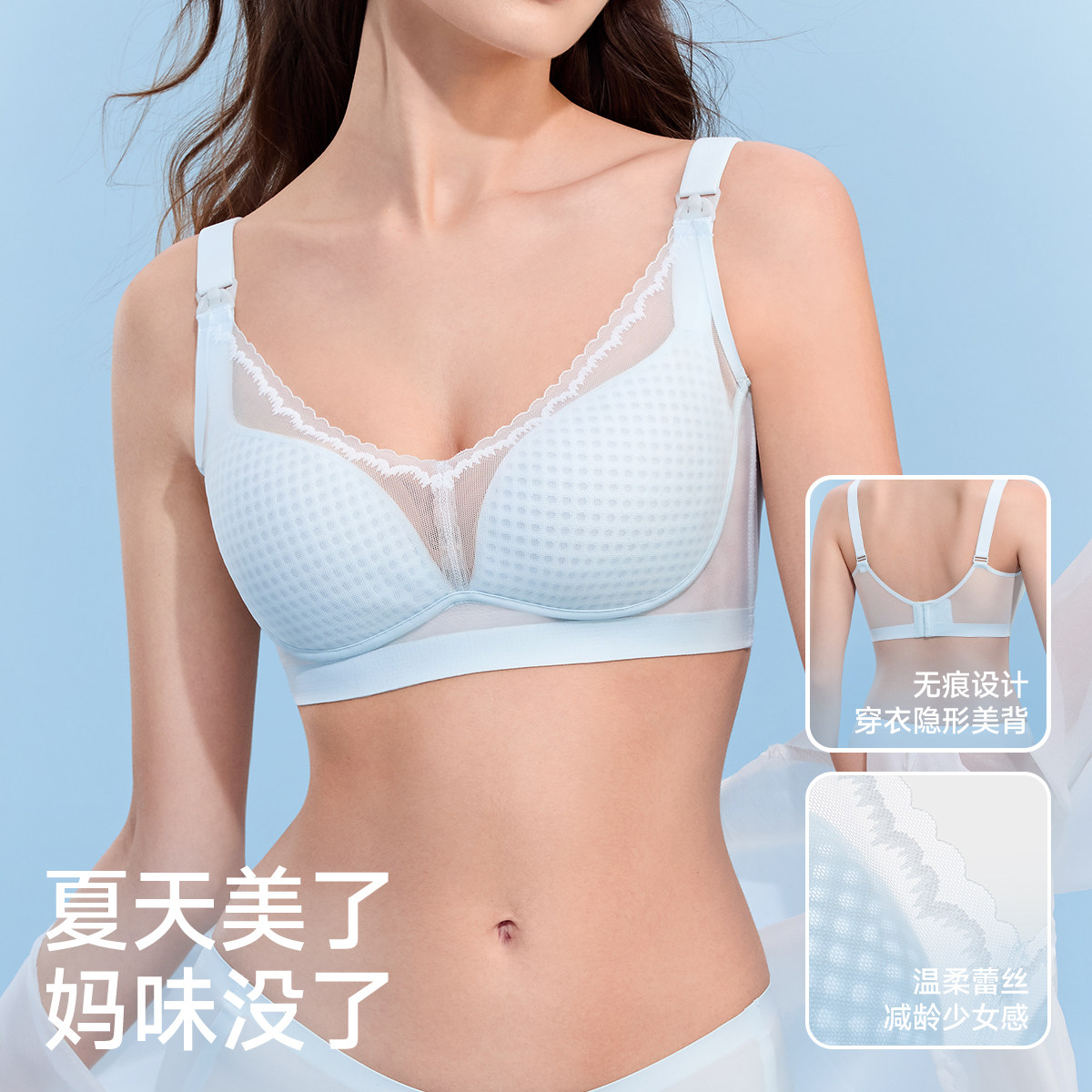 JQ婧麒大胸显小夏超薄哺乳内衣怀孕防下垂孕妇文胸 蜂巢杯2.0