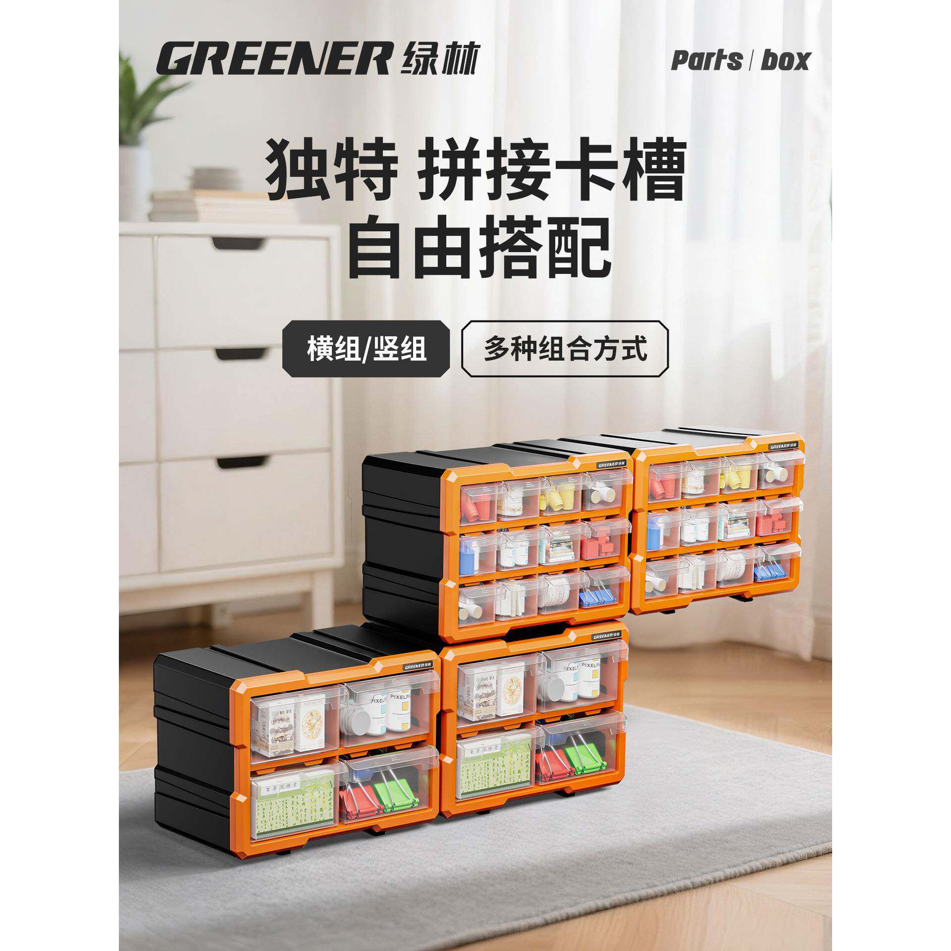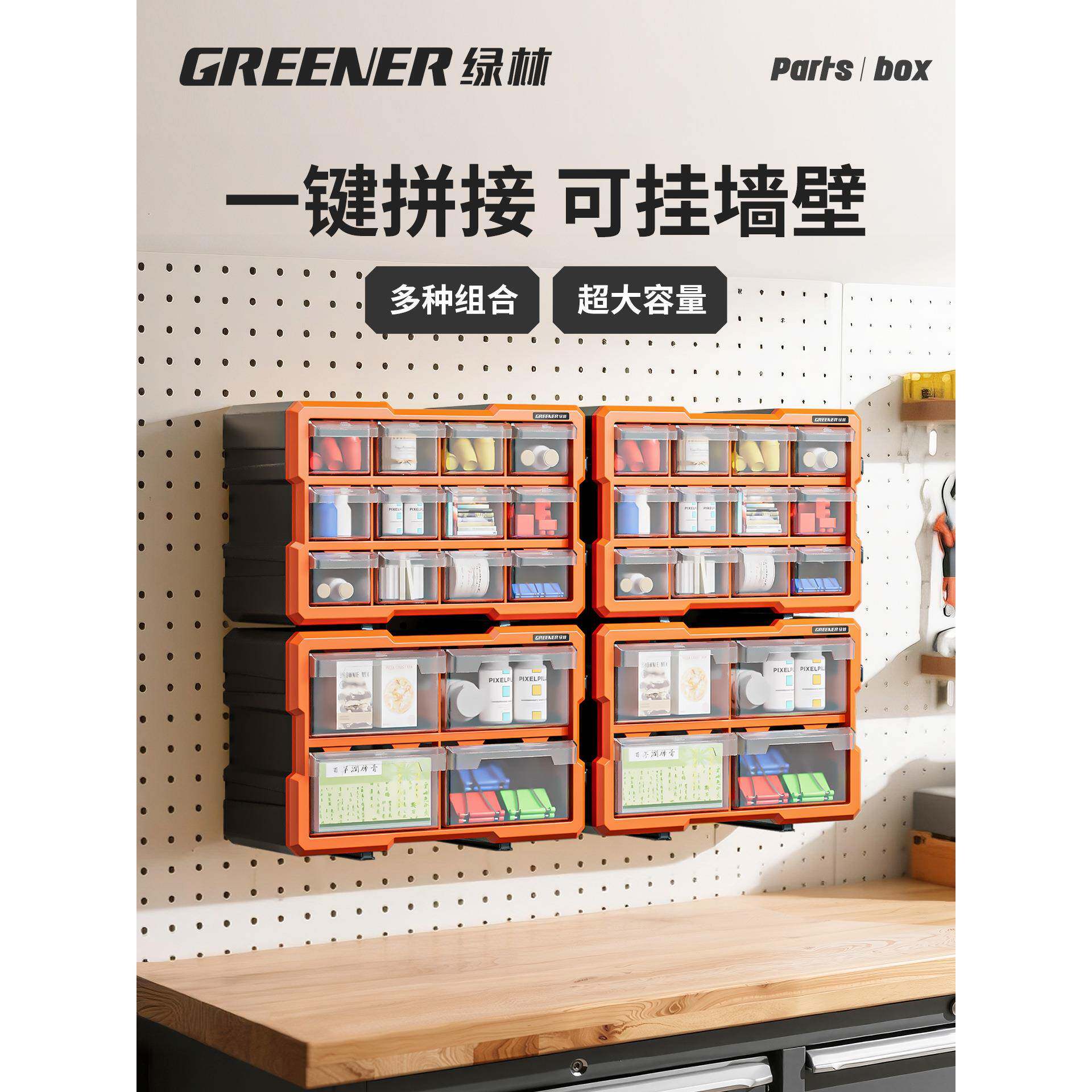 绿林收零件整纳盒配件物料螺丝盒零件柜抽屉式 器件779分 具工箱元