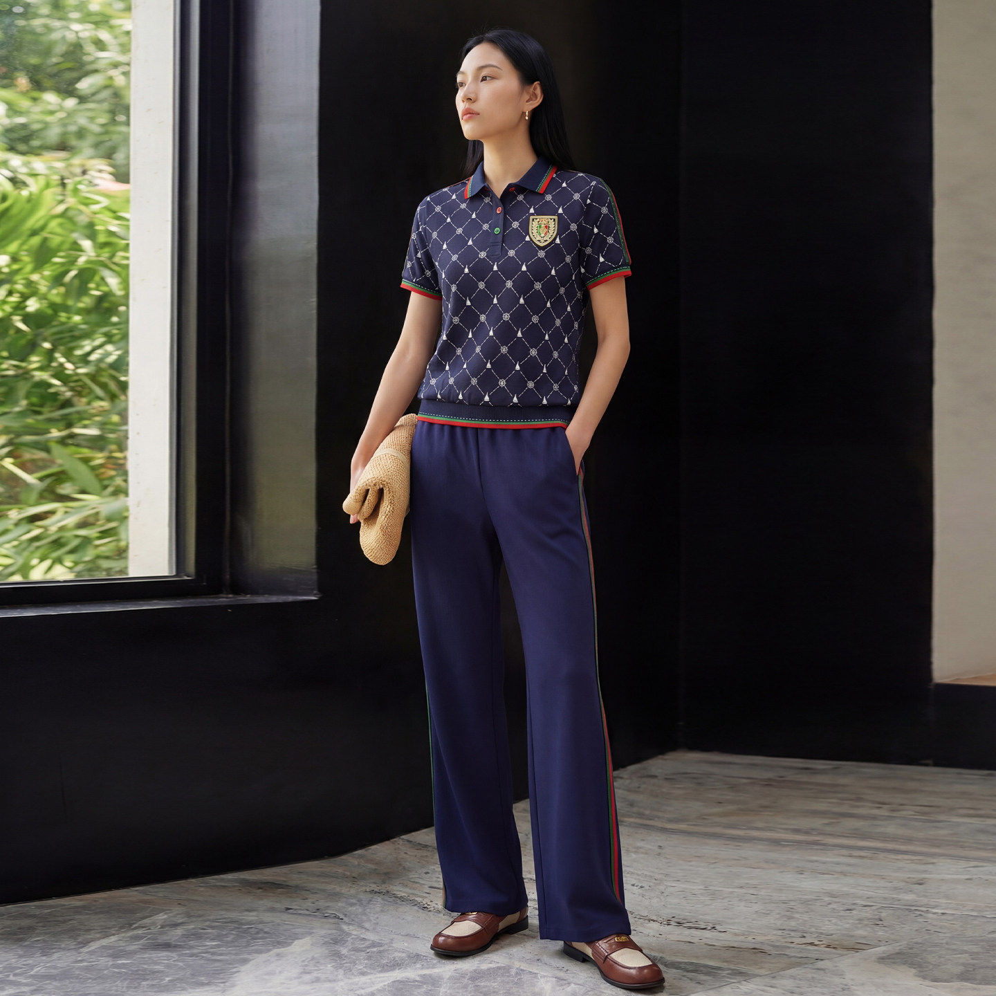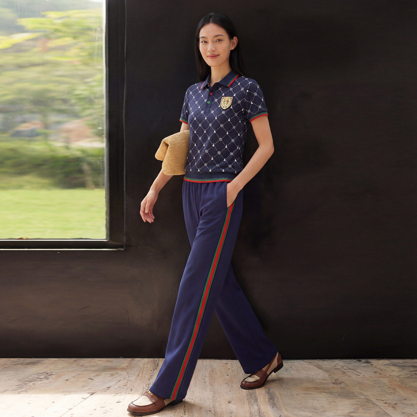 子两件套装 上衣T恤松紧腰直筒裤 蓝色翻领短袖 马天奴2026春夏新款