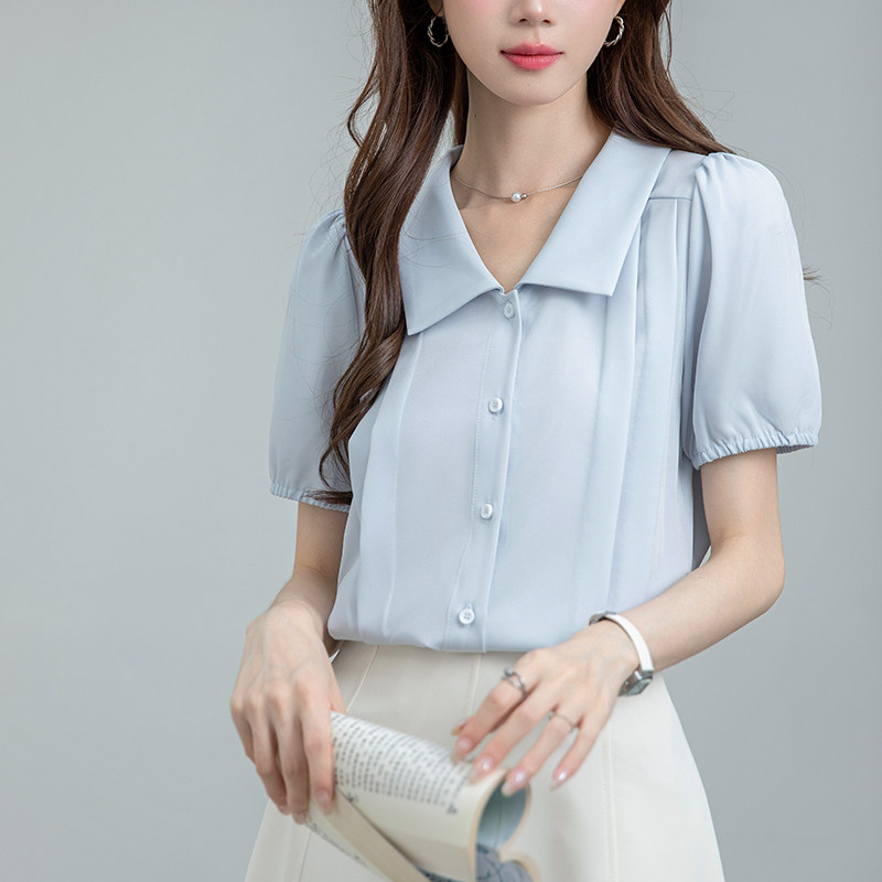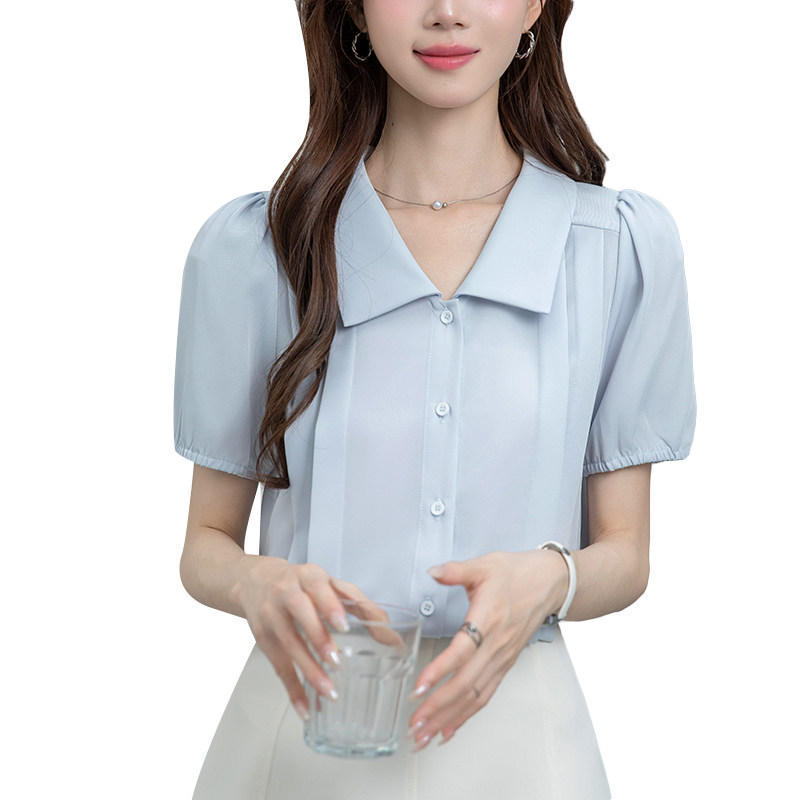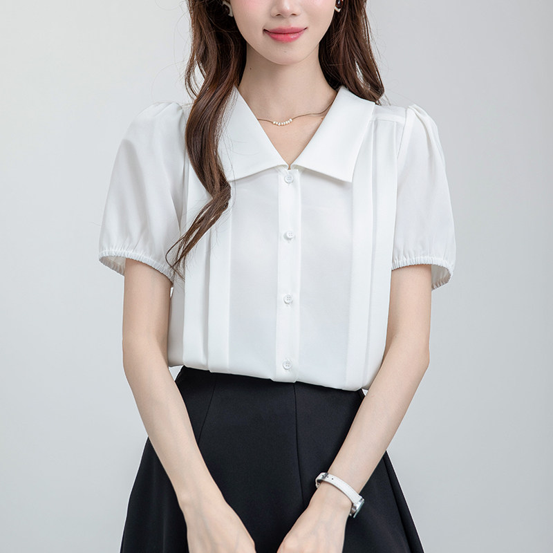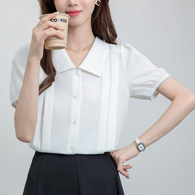 法式 女夏季 气质雪纺上衣面试职业通勤衬衣 衬衫 实拍2026白色短袖