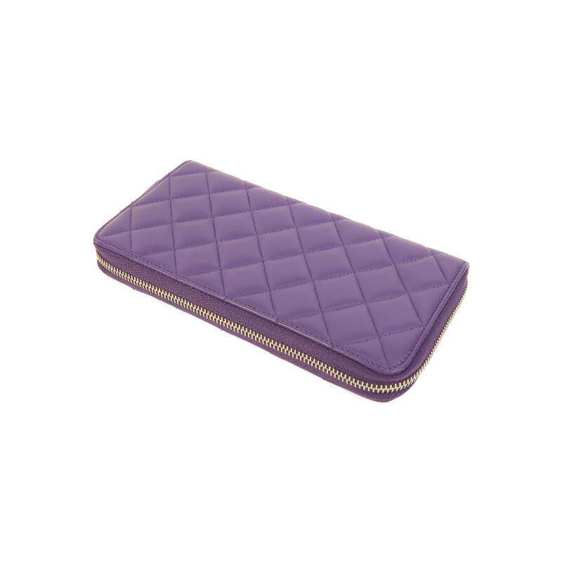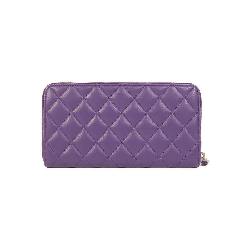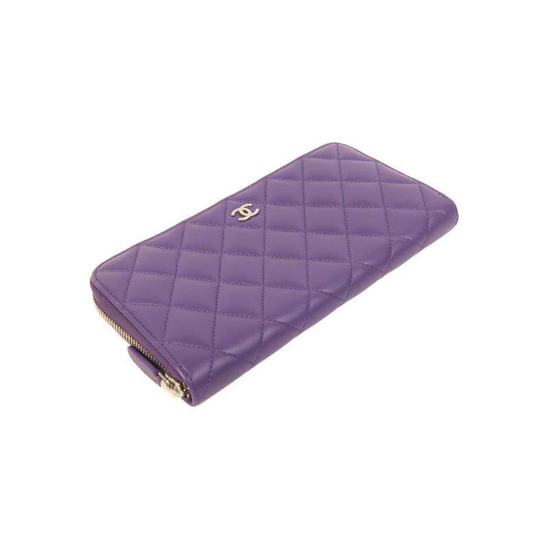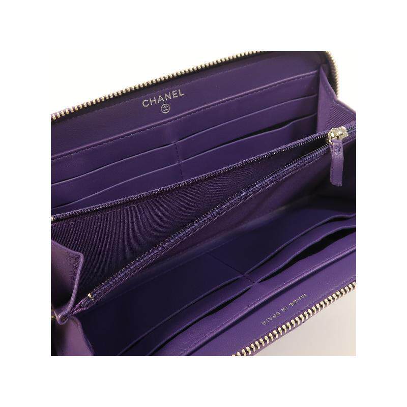 中古Chanel香奈儿女A级95新wallet钱包羊皮长钱包紫色