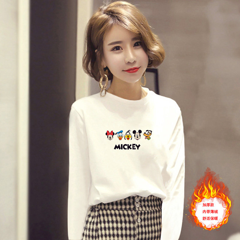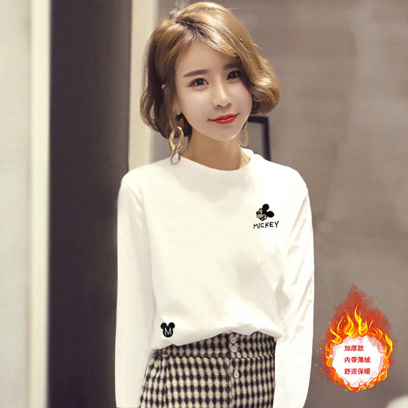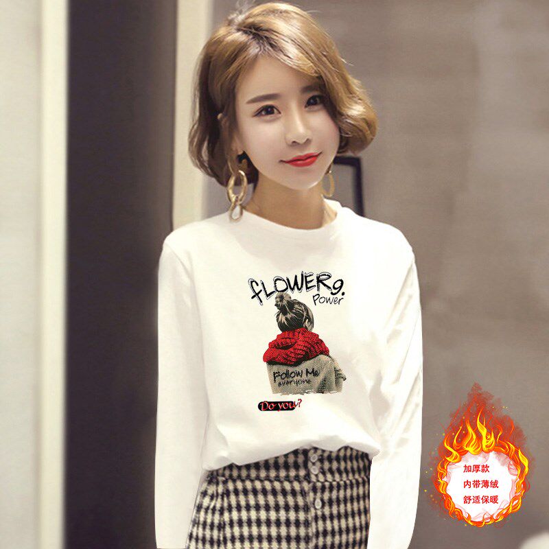 显瘦加厚打底衫 2020秋冬白色t恤女长袖 加绒纯色圆领百搭纯棉修身