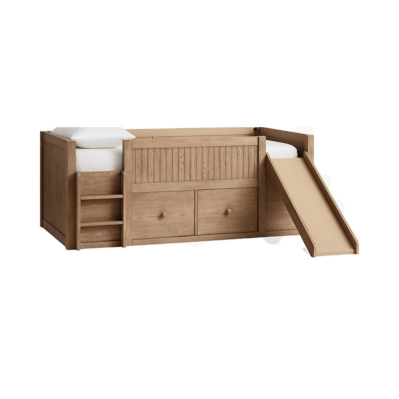 美式 全实木儿童房半高床带滑梯小户型高箱抽屉储物秘密基地单人床