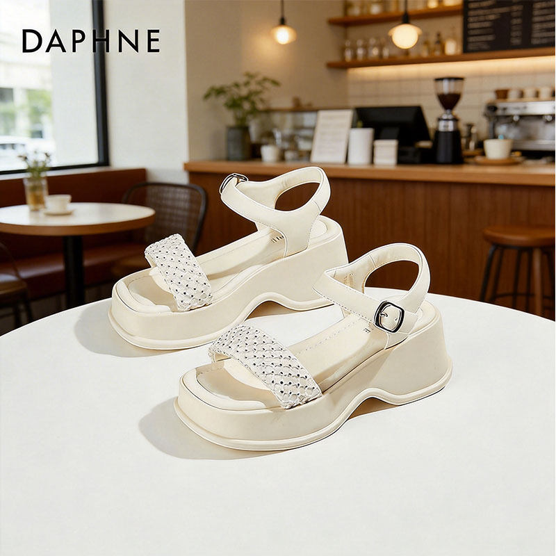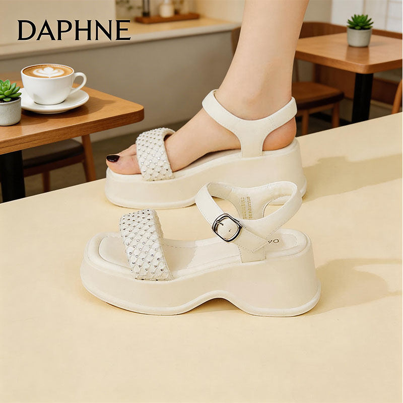 不累脚沙滩鞋 外穿增高坡跟配裙子罗马鞋 女夏季 达芙妮松糕厚底凉鞋