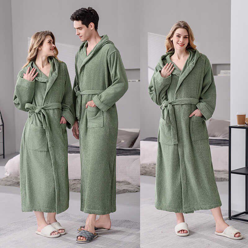 睡衣加长款 睡袍连帽浴袍纯棉毛巾料吸水大码 女 通用男士 秋冬四季