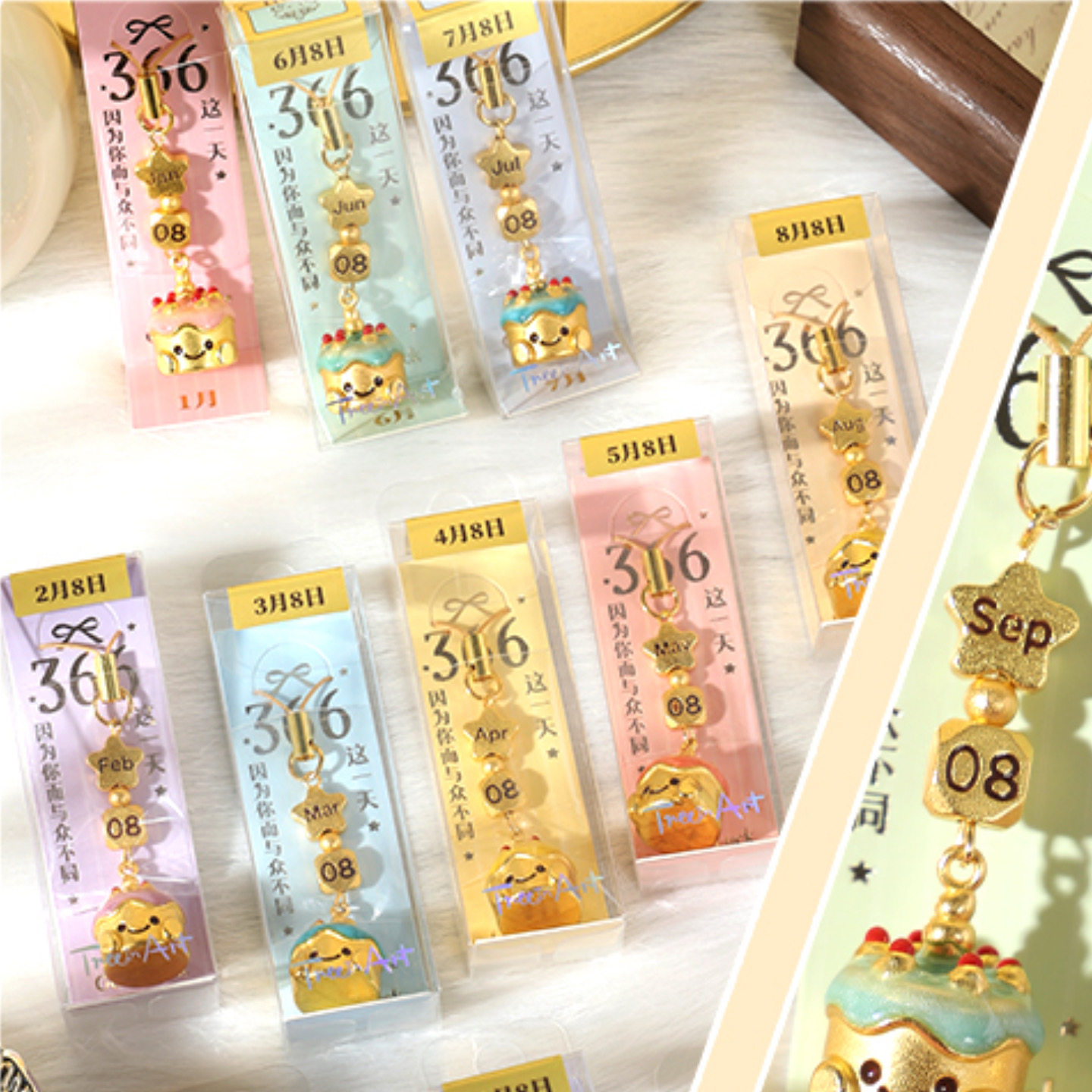 青壹坊366days蛋糕挂件ins网红精致蛋糕手机链钥匙链专属生日日期