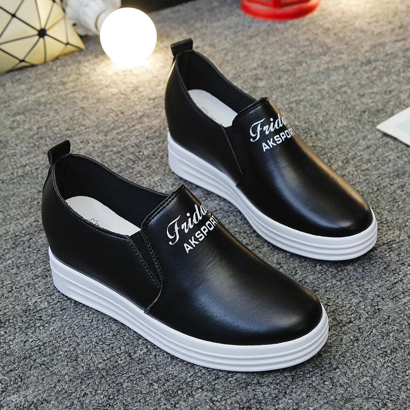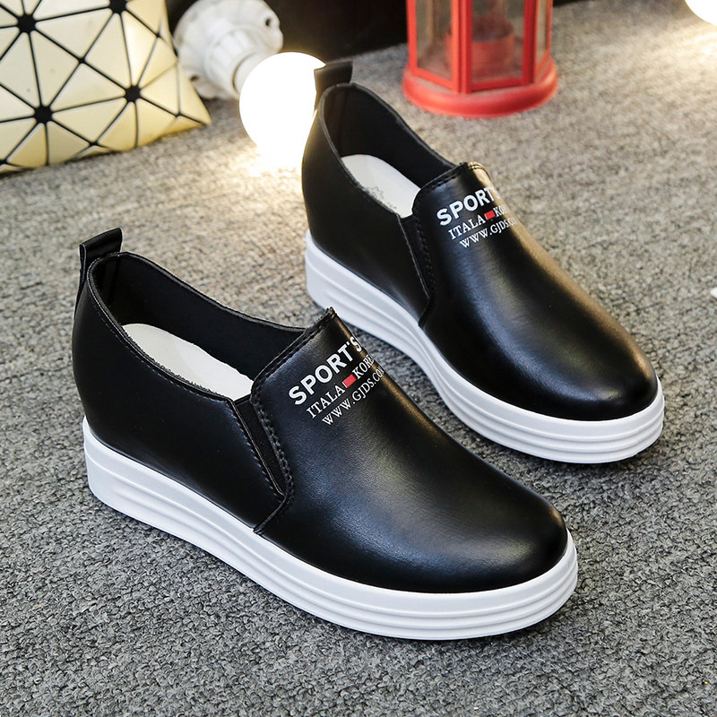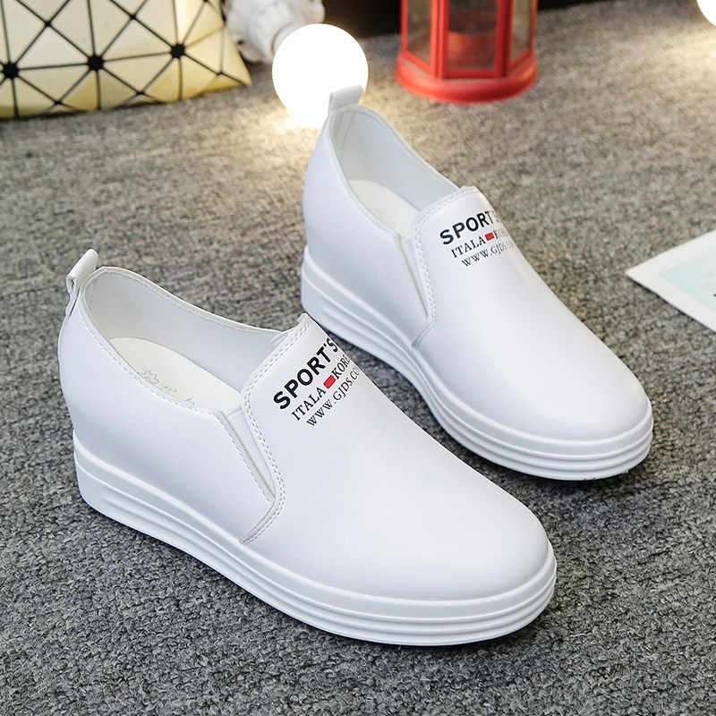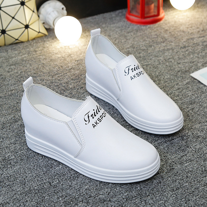 休闲女运动鞋 女内增高厚底百搭一脚蹬懒人坡跟单鞋 小白鞋 春夏新款