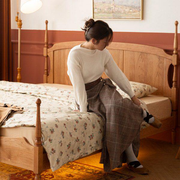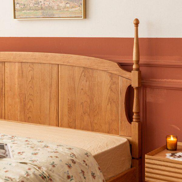 樱桃房间北欧樱桃木床主卧复古1.5米单人床法式 1.8米双人床原木床