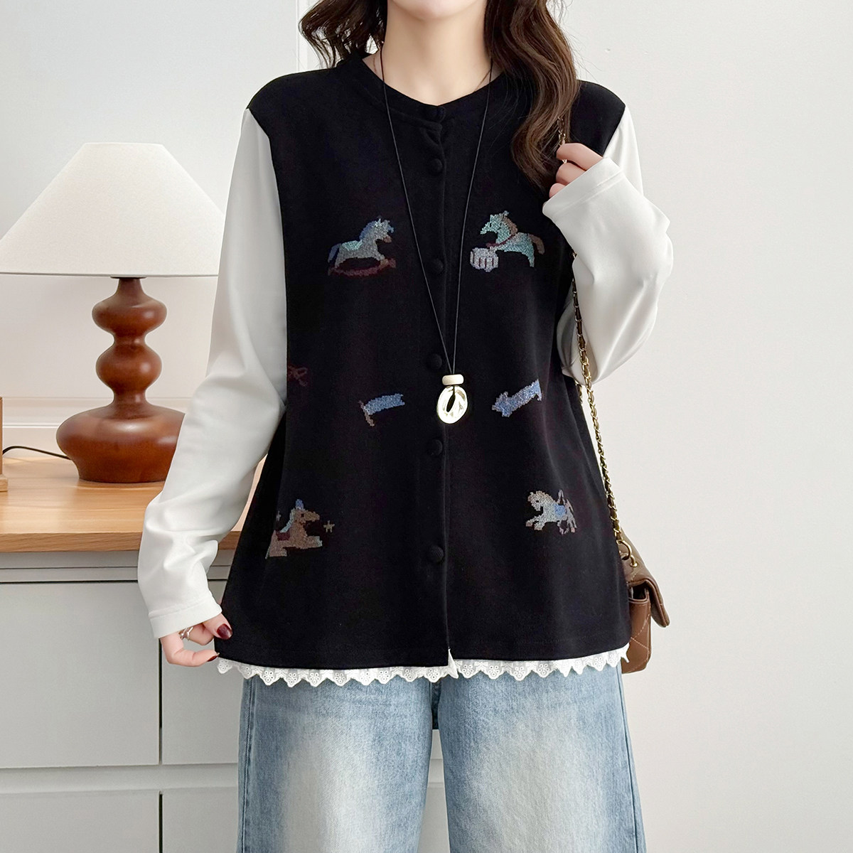 拼接印花T恤时尚 加肥加大码 新款 胖mm200斤春季 百搭减龄上衣 女装
