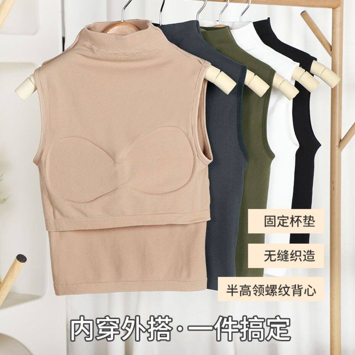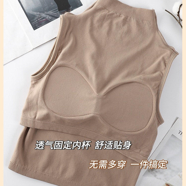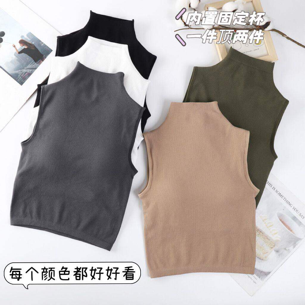 韩版 百搭打底抹胸内衣马甲上衣 半高领少女美背吊带背心带胸垫修身