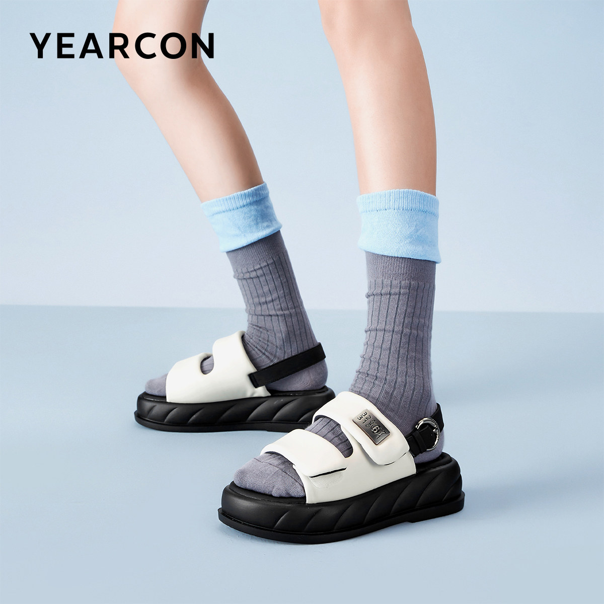 露趾夏季 凉鞋 魔术贴休闲青年厚底外穿 女鞋 意尔康官方正品