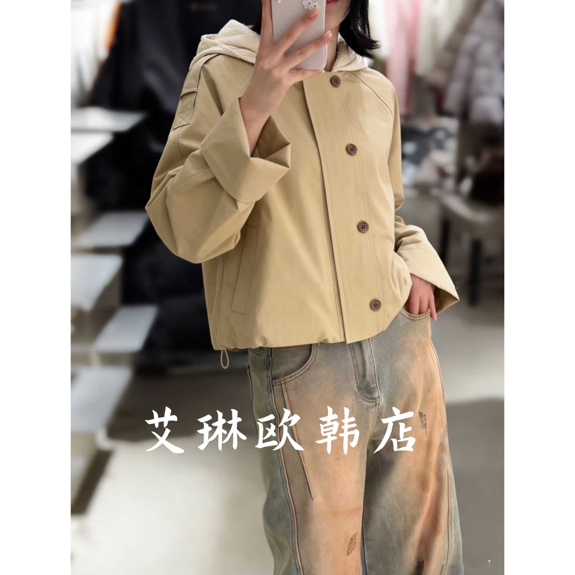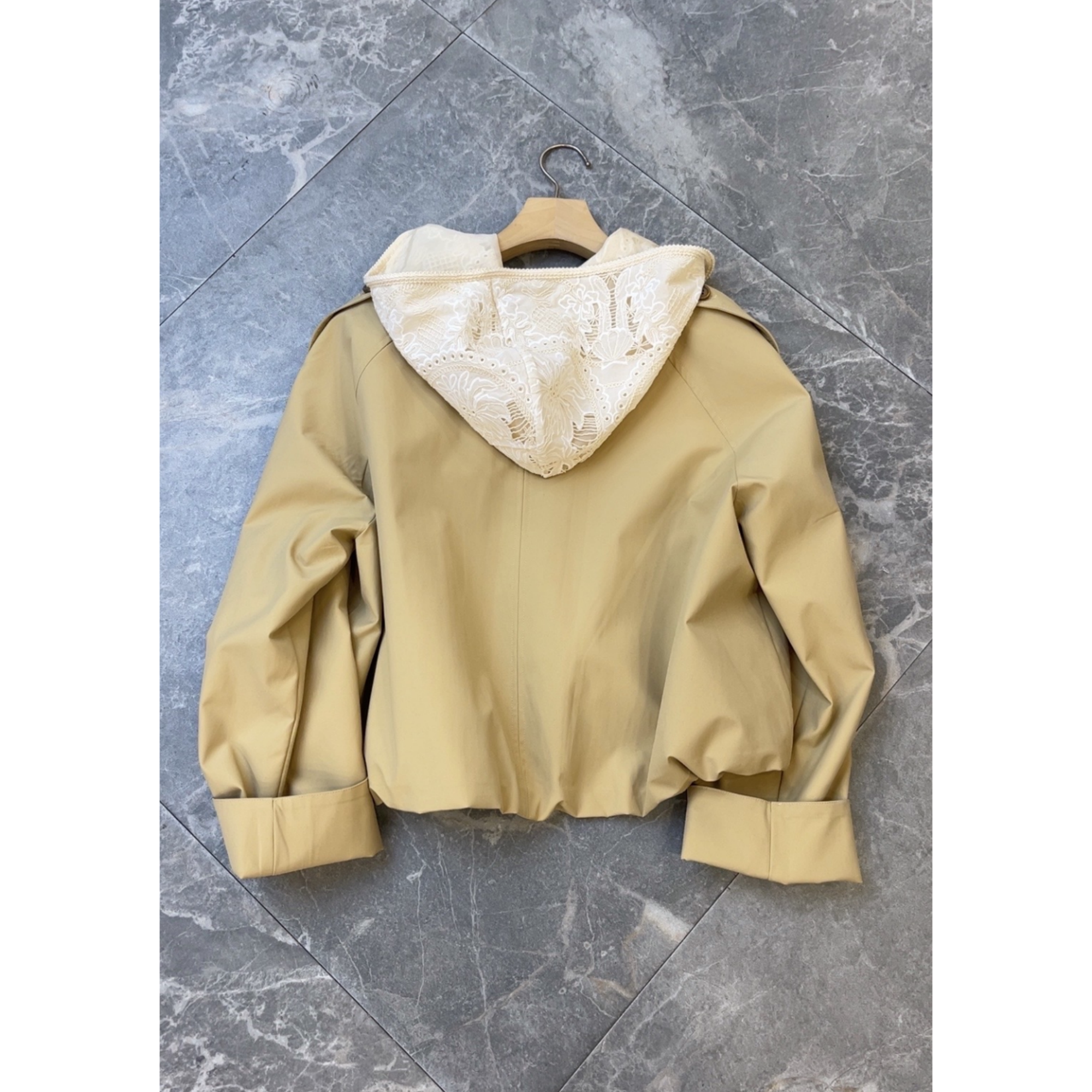 欧货蕾丝连帽假两件宽松休闲百搭风衣短外套女 新款 3.16 8815春装