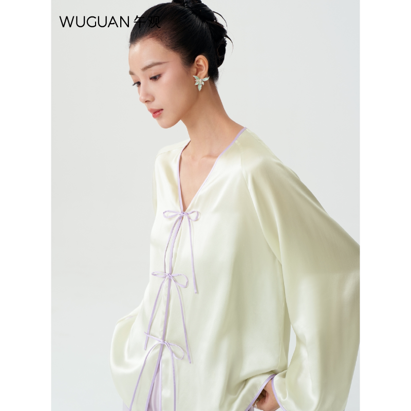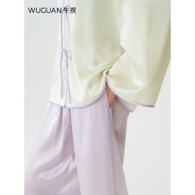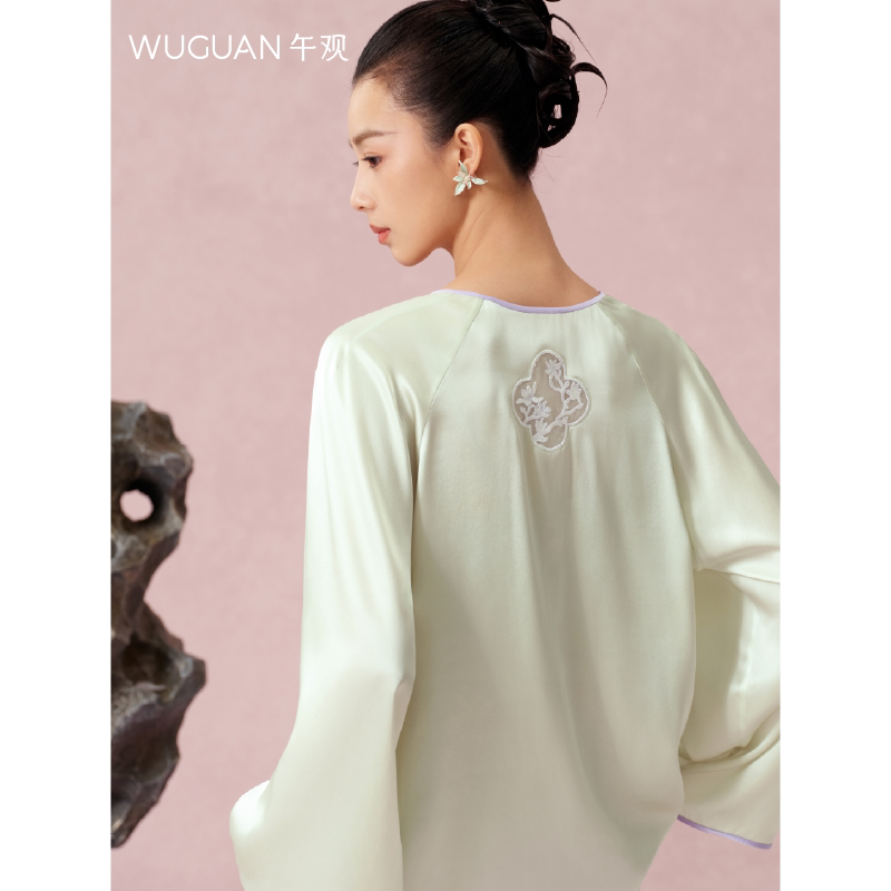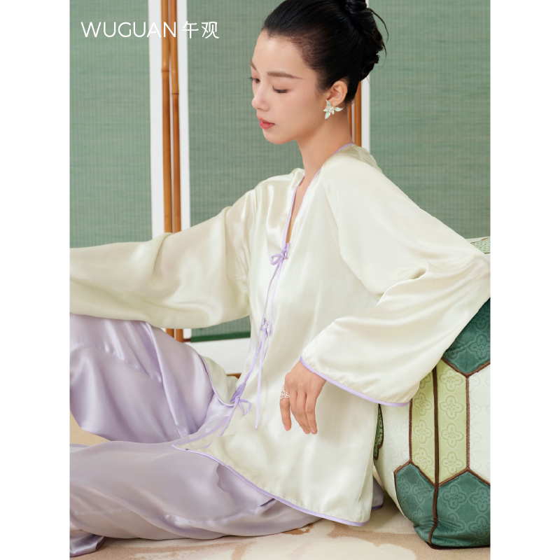 100%桑蚕丝可外穿真丝睡衣中式 家居服套装 慵懒起居服 园景 午观