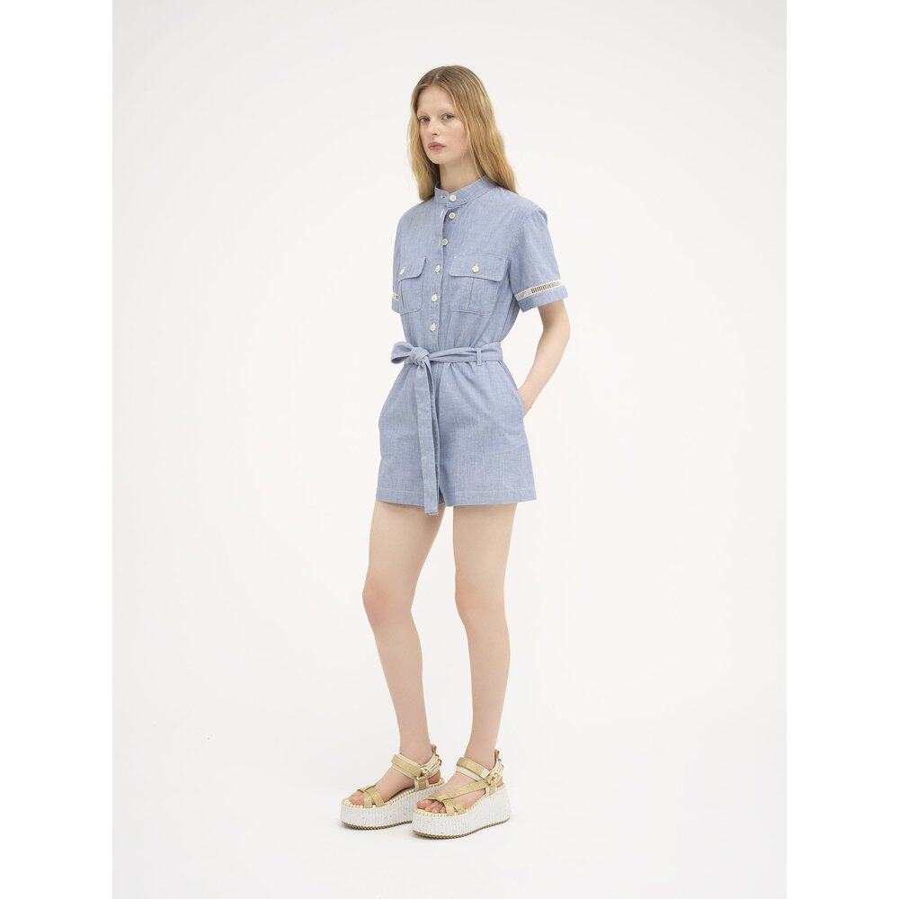 女士连体裤 纽扣短袖 C24UDL011574A7 蓝色 SS2024 香港直邮CHLOÉ