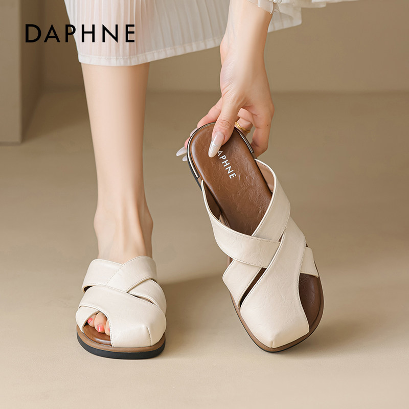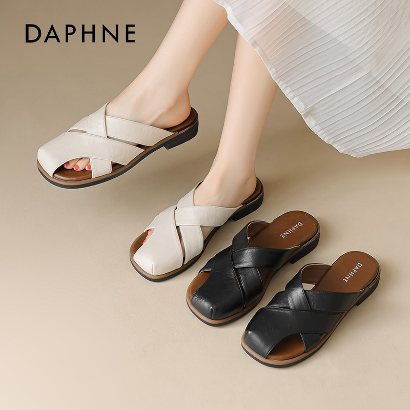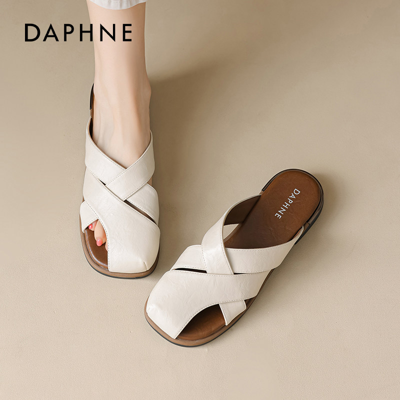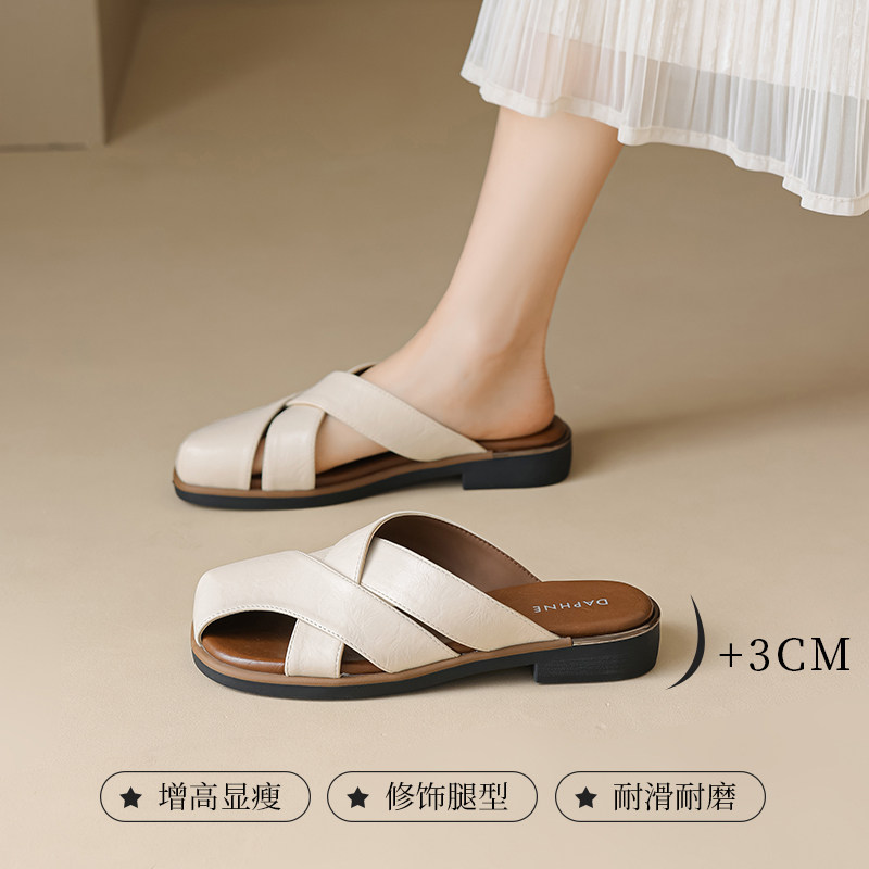 配裙子白色罗马沙滩半拖鞋 法式 女夏外穿2026新款 达芙妮包头凉拖鞋