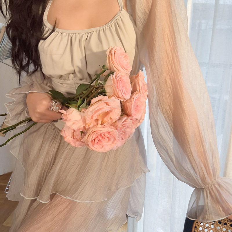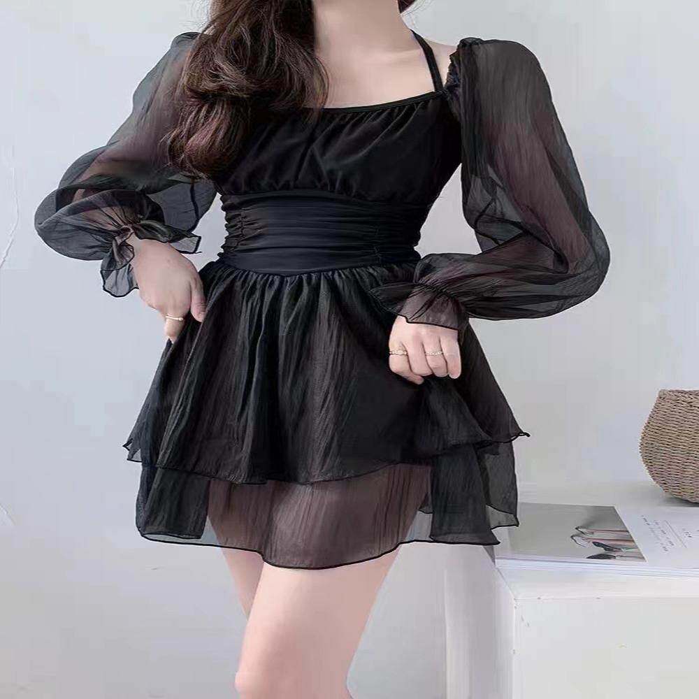 高级感长袖 显瘦遮肚泳装 防晒度假泡温泉ins 连体泳衣修身 2022新款