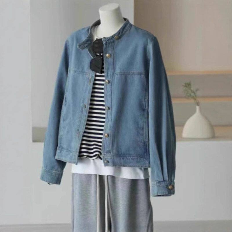 短款 推荐 夹克 港风显瘦蓝色自留女上衣爆款 牛仔外套宽松复古秋季