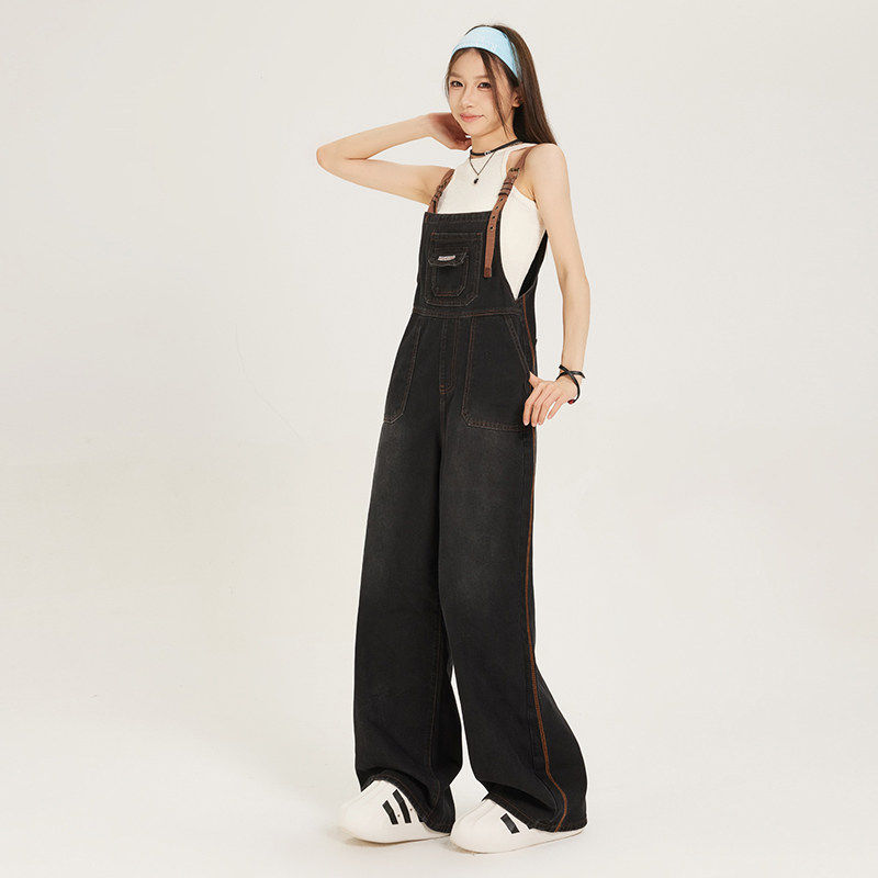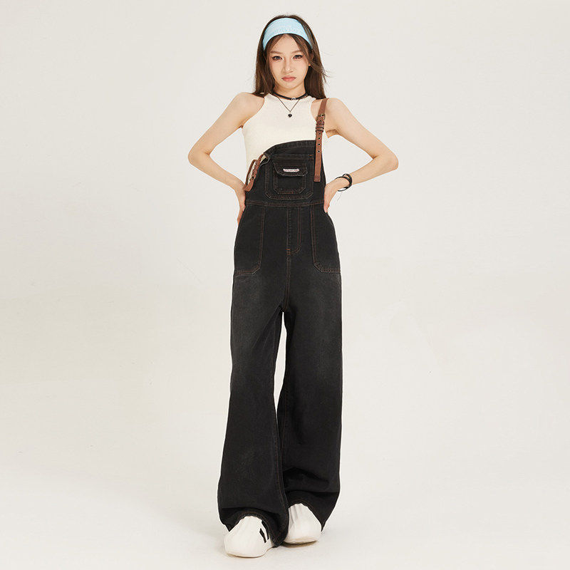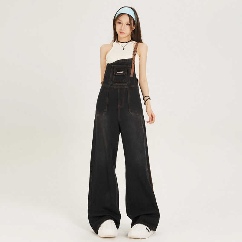 吊带设计宽松bf风减龄阔腿连身裤 美式 新款 女夏季 覆古牛仔抱婴袋裤
