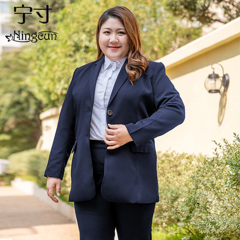 工作服200斤加肥胖mm西服套装 大码 秋冬职业正装 外套女中长款 西装