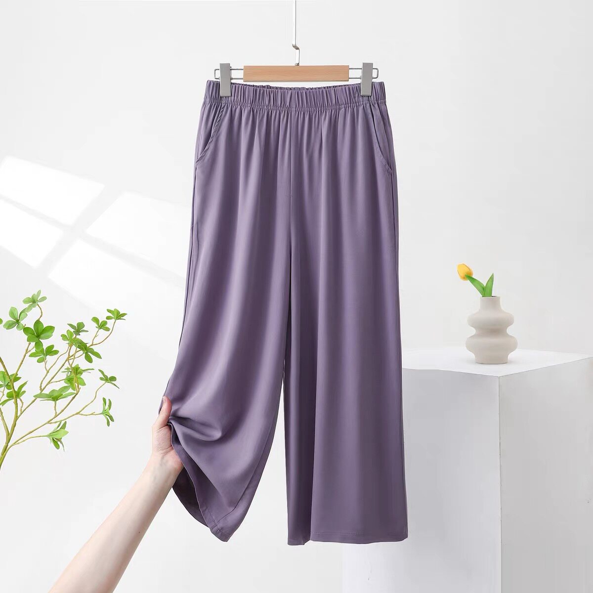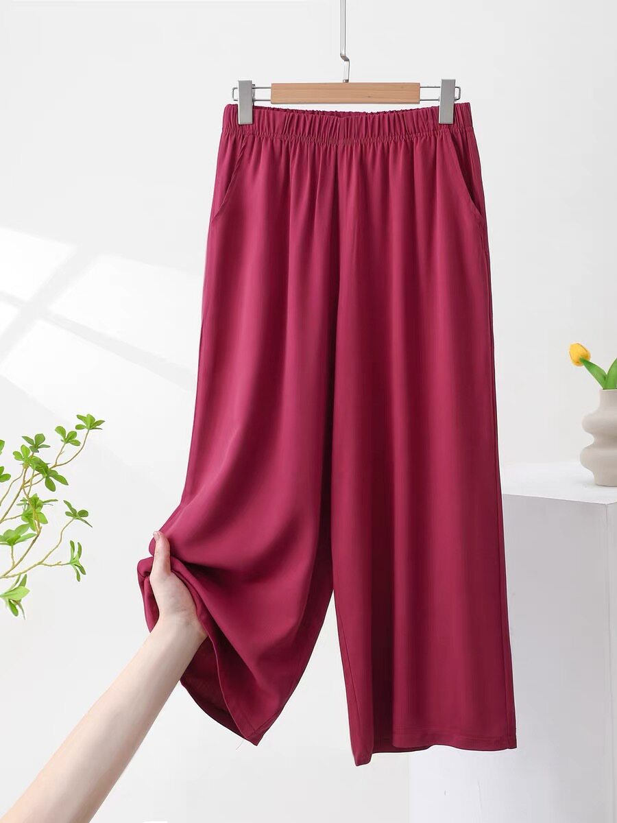 彩色八分裤 夏季 胖mm显瘦阔腿裤 休闲直筒裤 薄款
