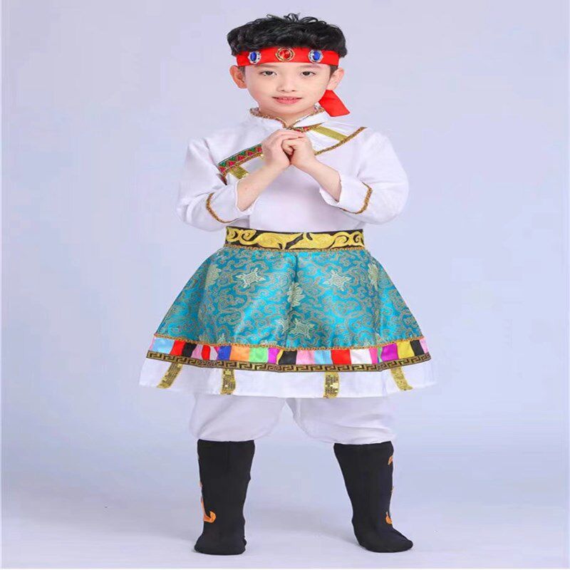 儿童藏族演出服男女童表演服蒙古服扎西德勒水袖 裙子舞蹈服女 新款