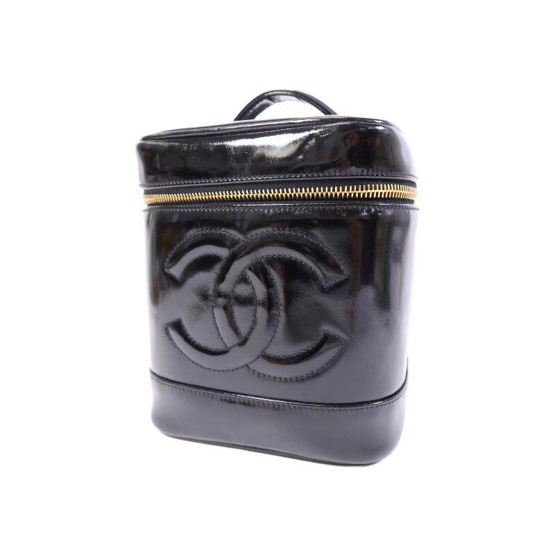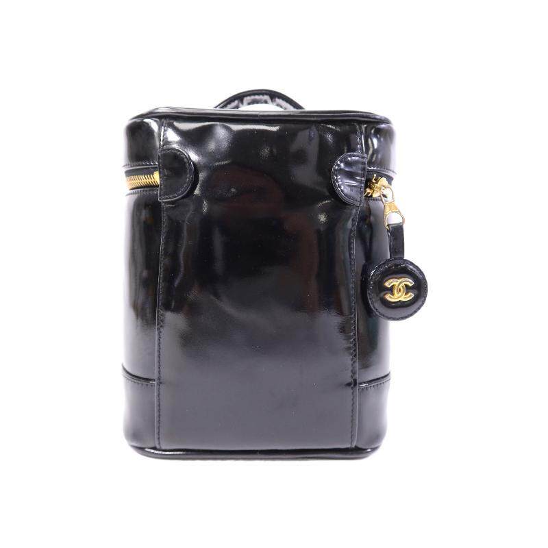 中古Chanel香奈儿女包B级9新Vanity化妆包漆皮手提包黑色