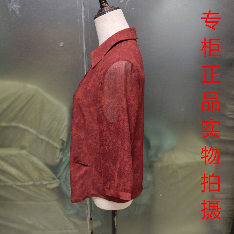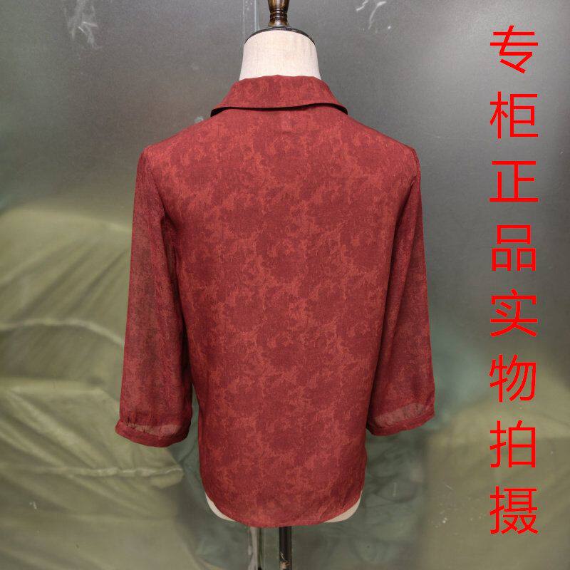 时尚 鑫浩唯26A 女POLO领纽扣妈妈装 雪纺衬衫 减龄 18复古红色七分袖