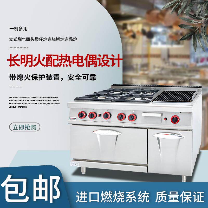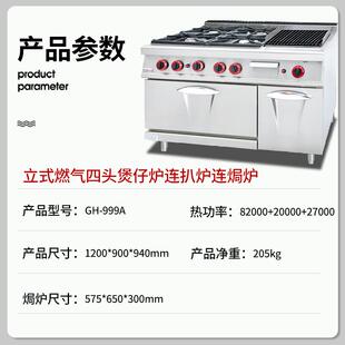 799A商用不锈钢 燃气四头煲仔炉连烧烤炉连焗炉GH 杰冠GH 999A立式