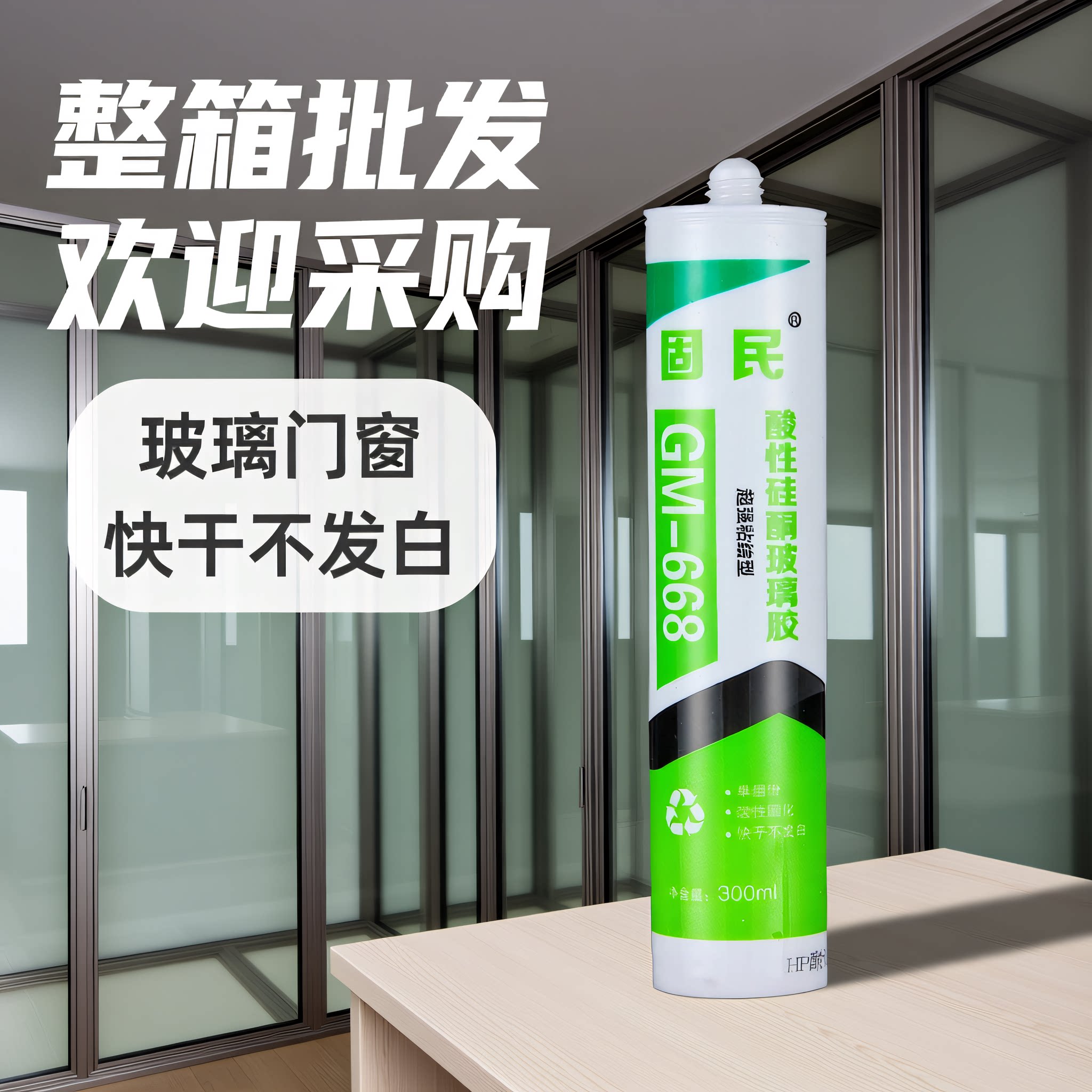固民668酸性硅酮玻璃胶集成吊顶专用胶酸性瓷白透明耐候胶整箱