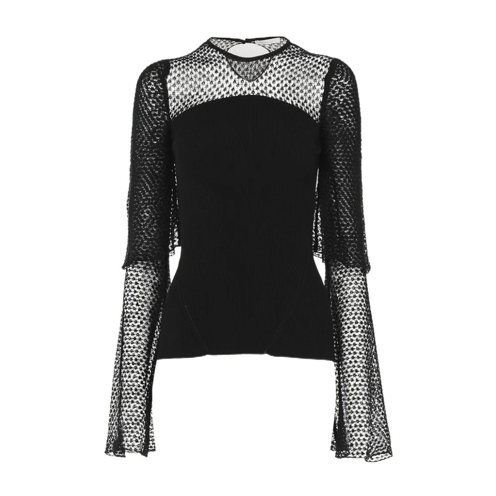 黑色 CHLOÉ AW2023 C23AMH03530001 圆领蕾丝毛衣 女士针织衫