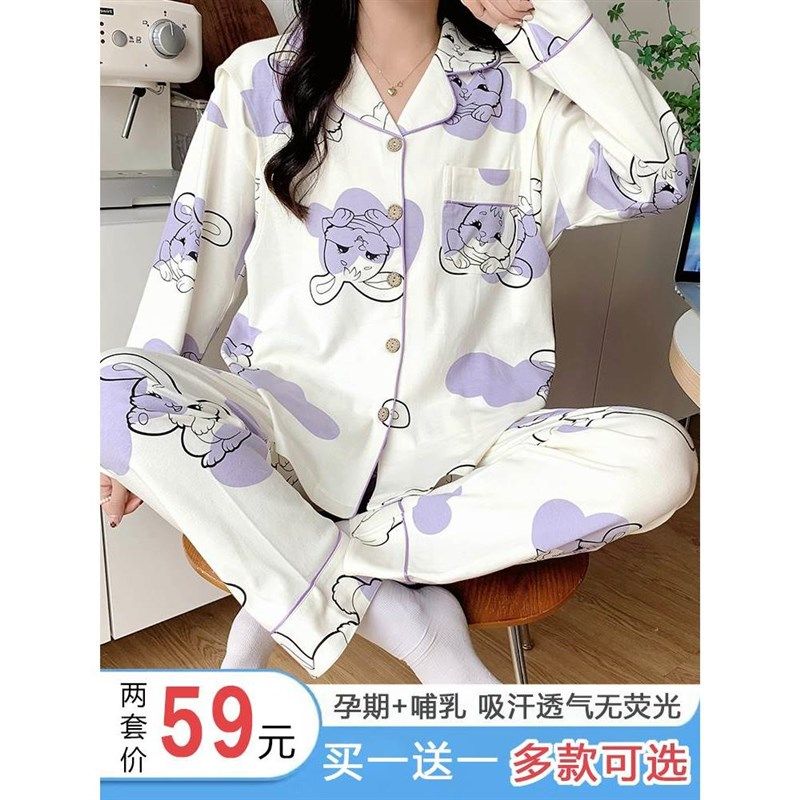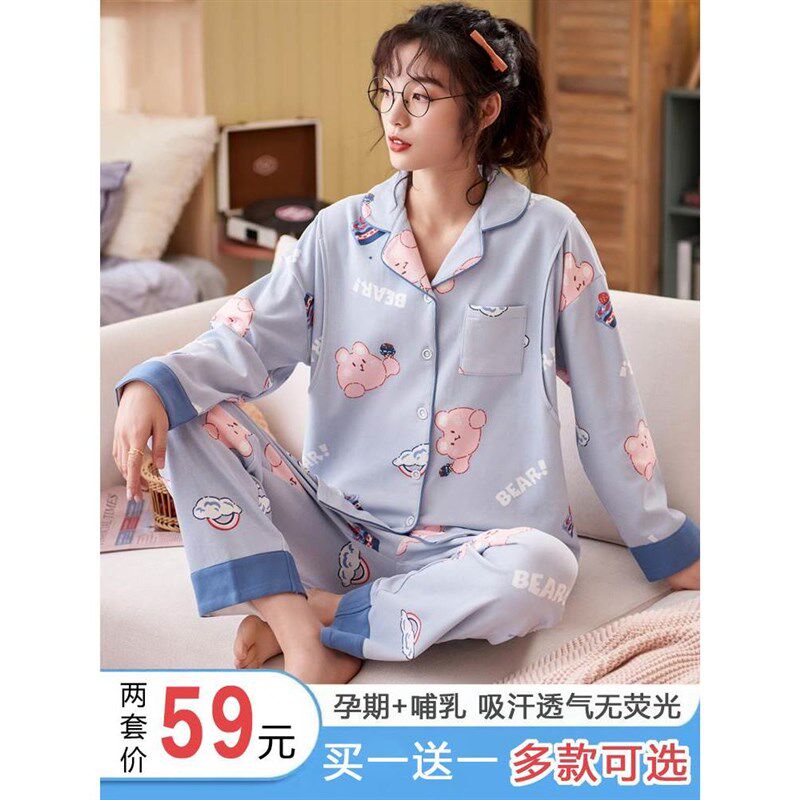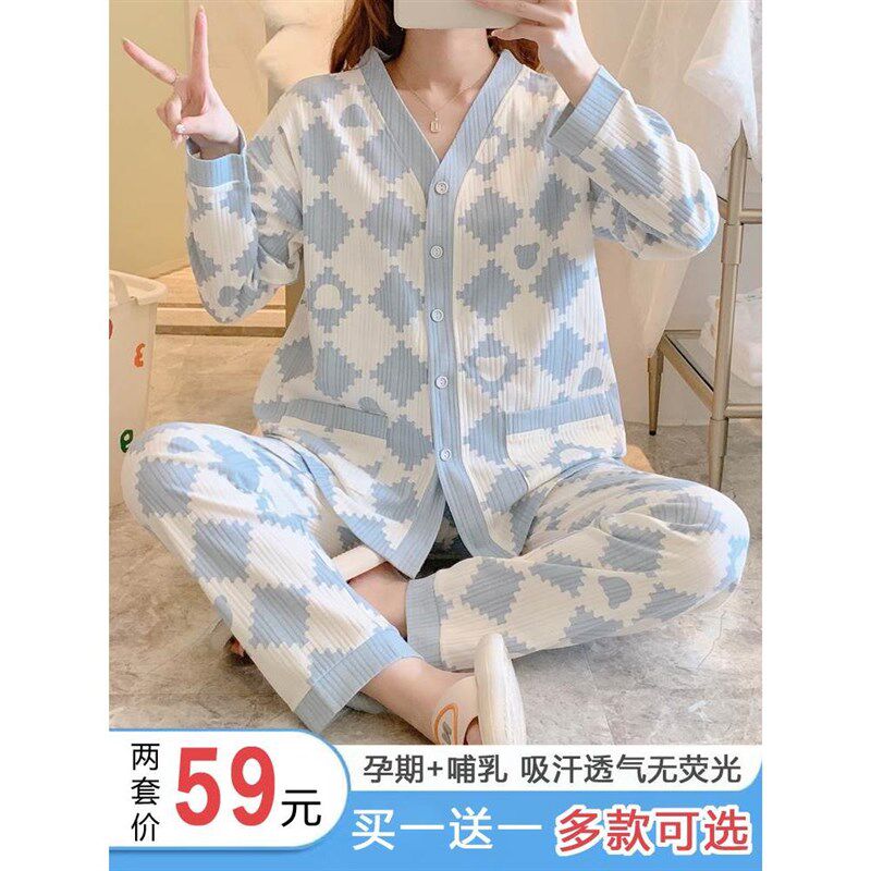 月子服春秋夏季 纯棉产后喂奶哺乳夏天怀孕期产妇孕妇睡衣女10月份