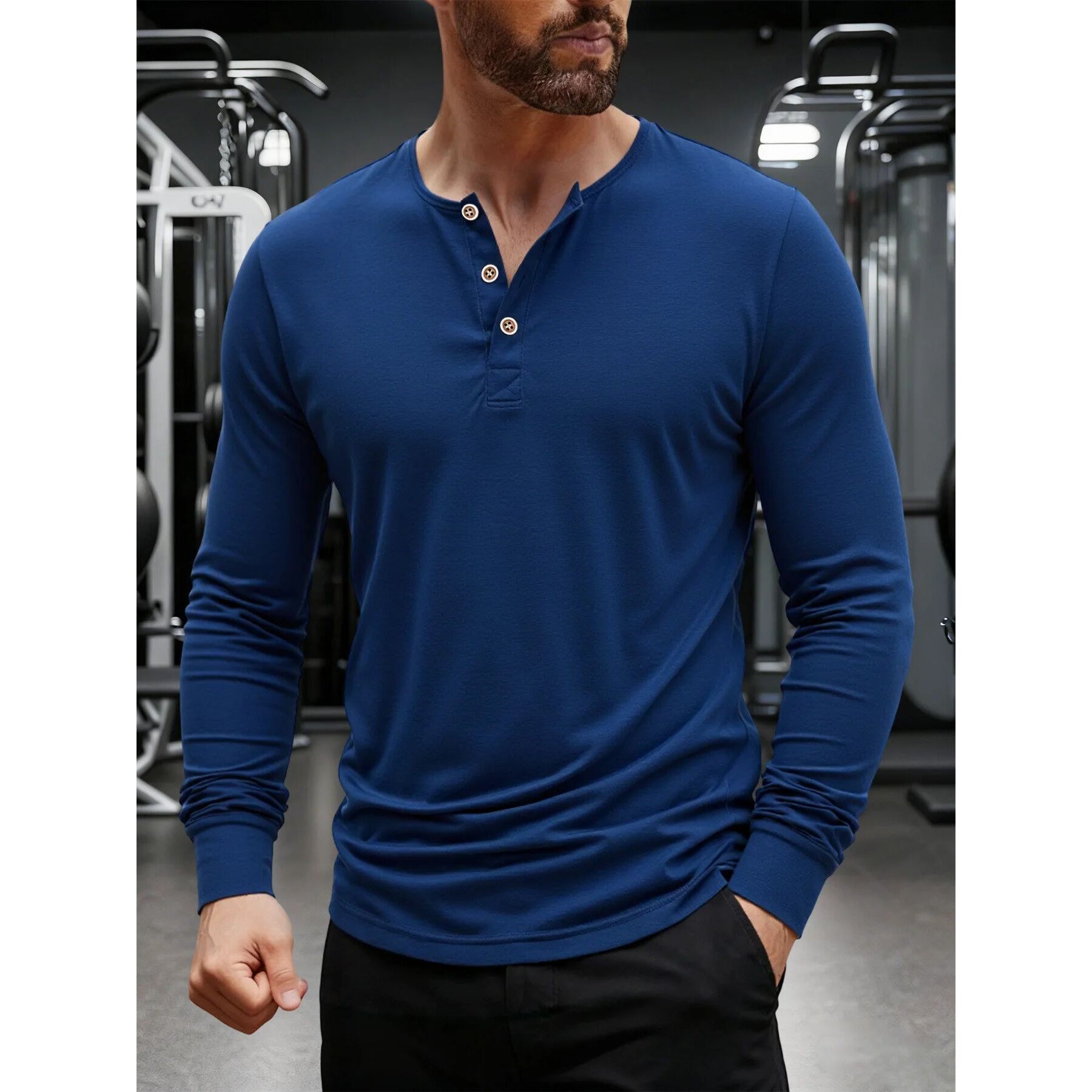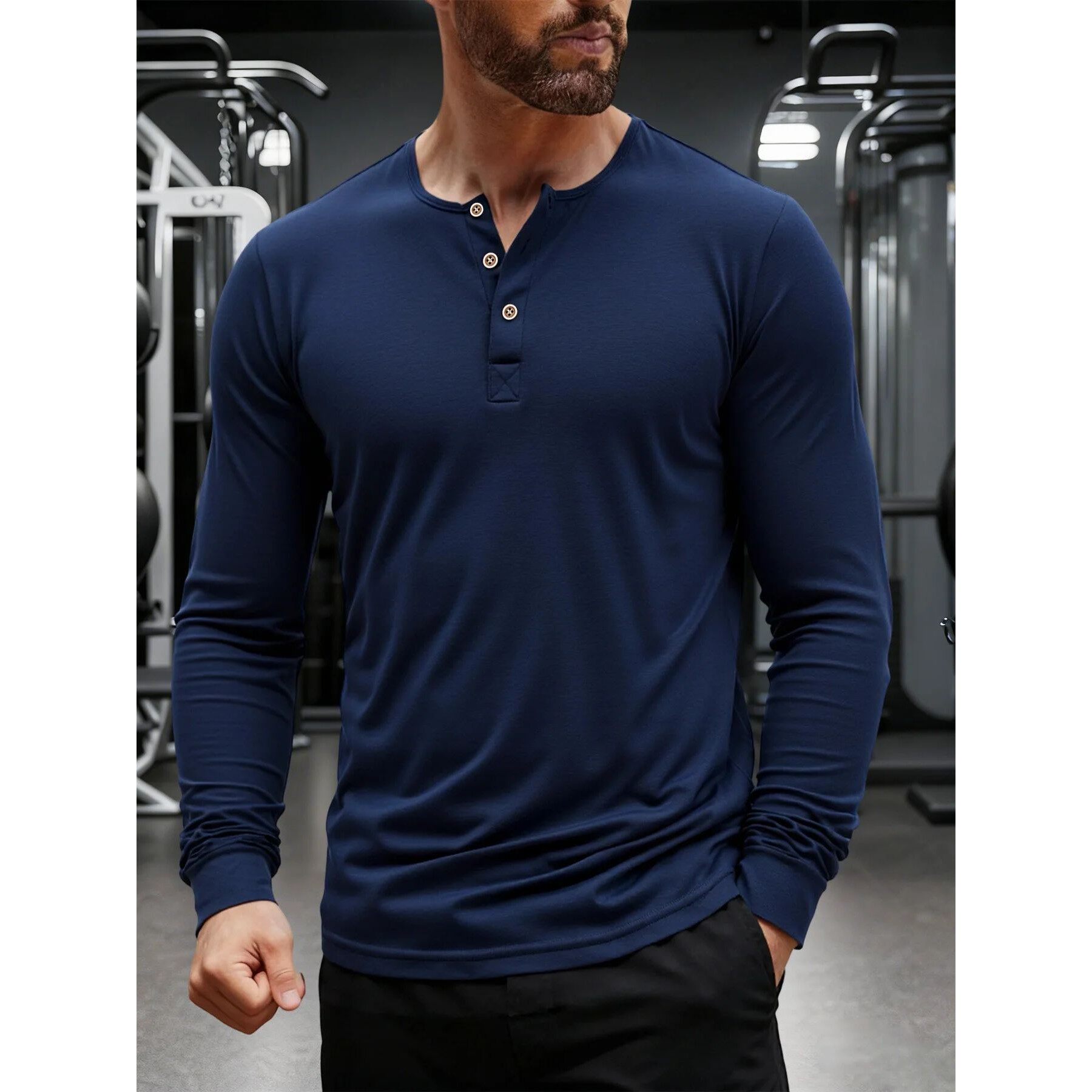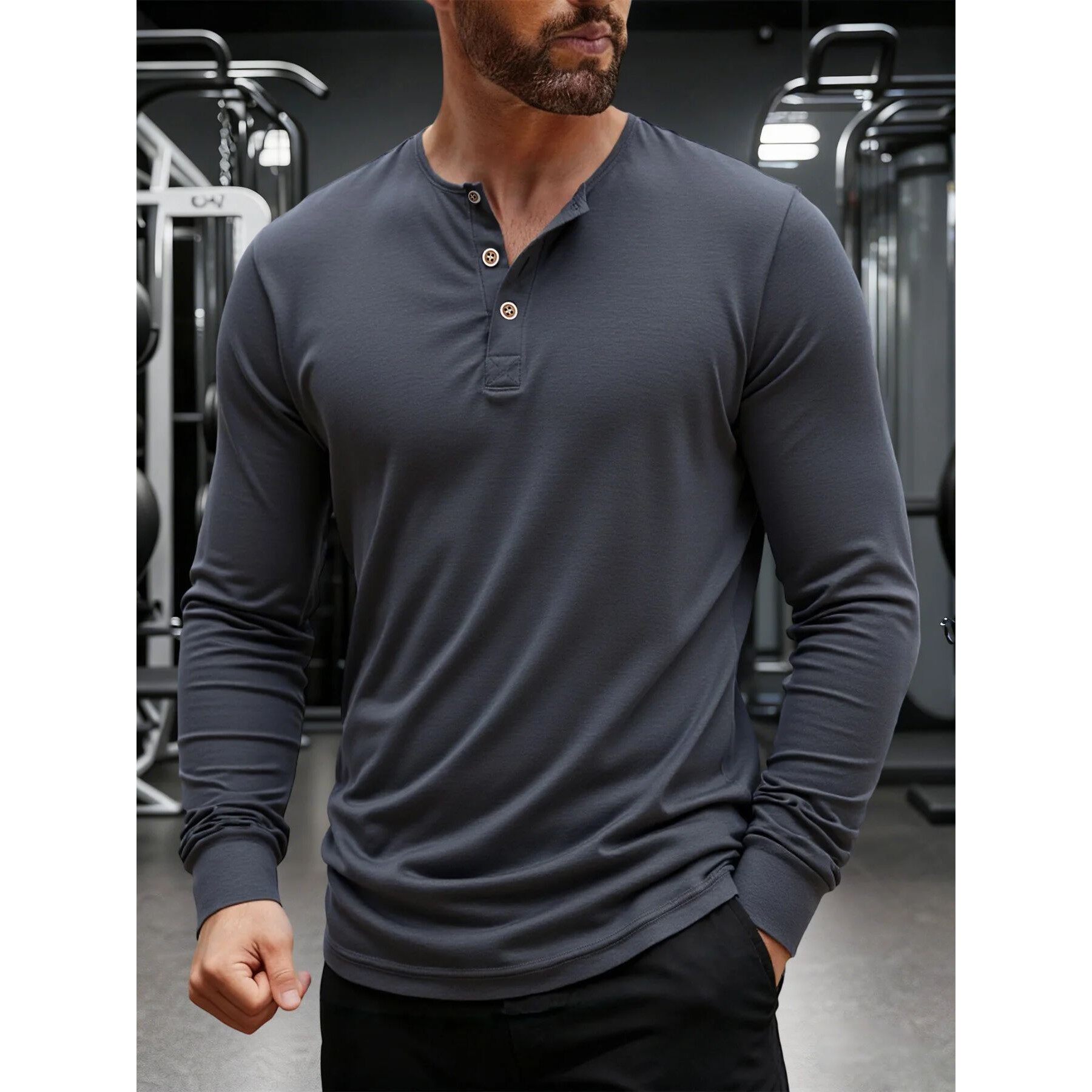 Shirt Autumn Henley Neck Sleeve Long Men Button