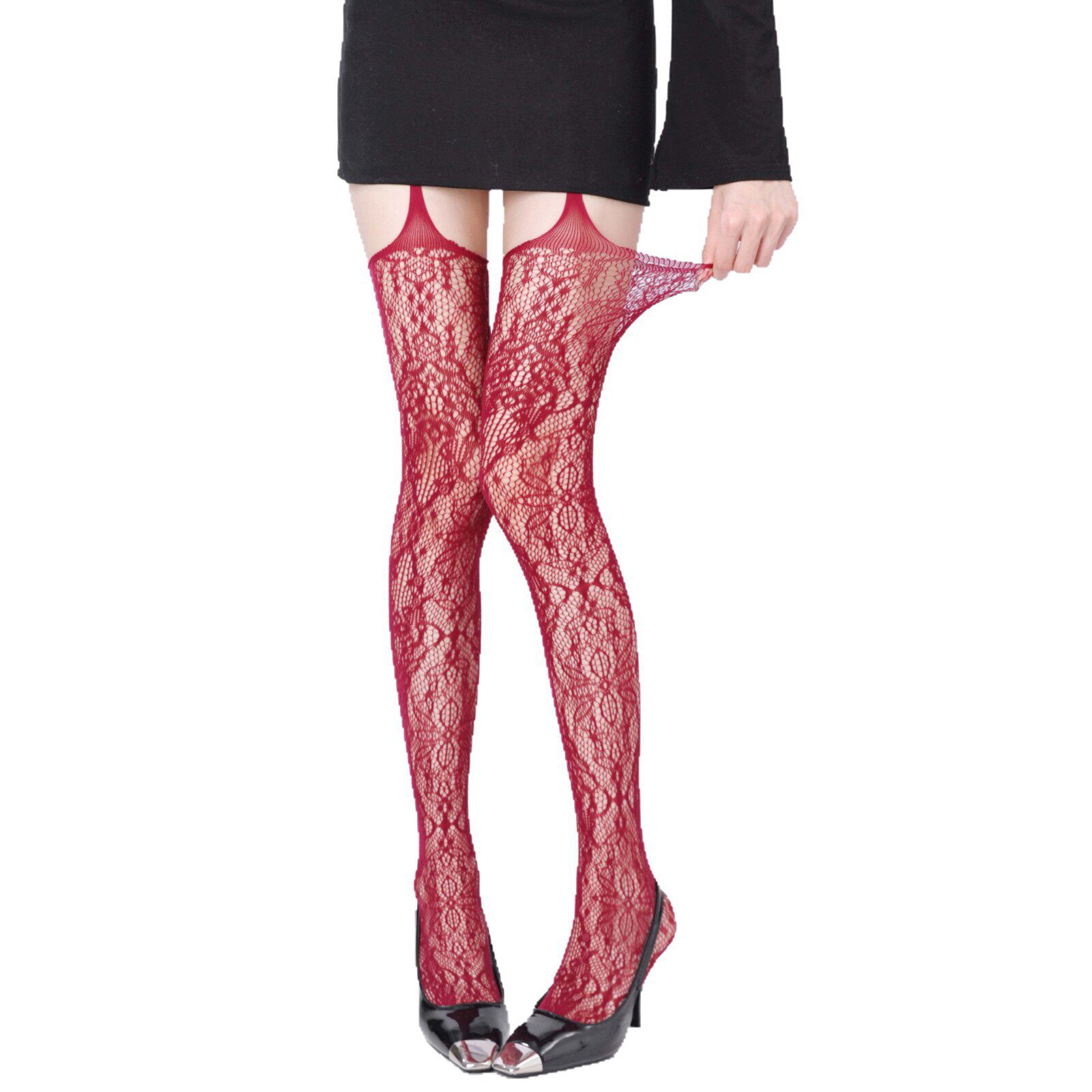 春夏网红复古提花网袜镂空吊带开档黑丝渔网袜连裤 jk女袜 袜薄款