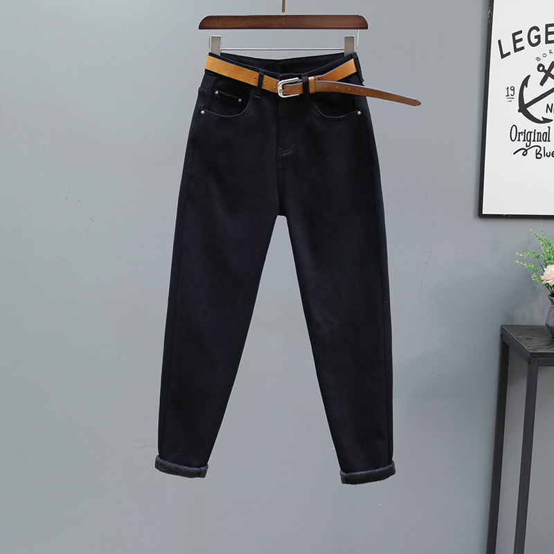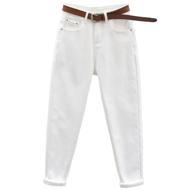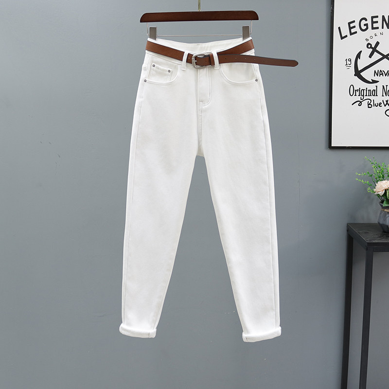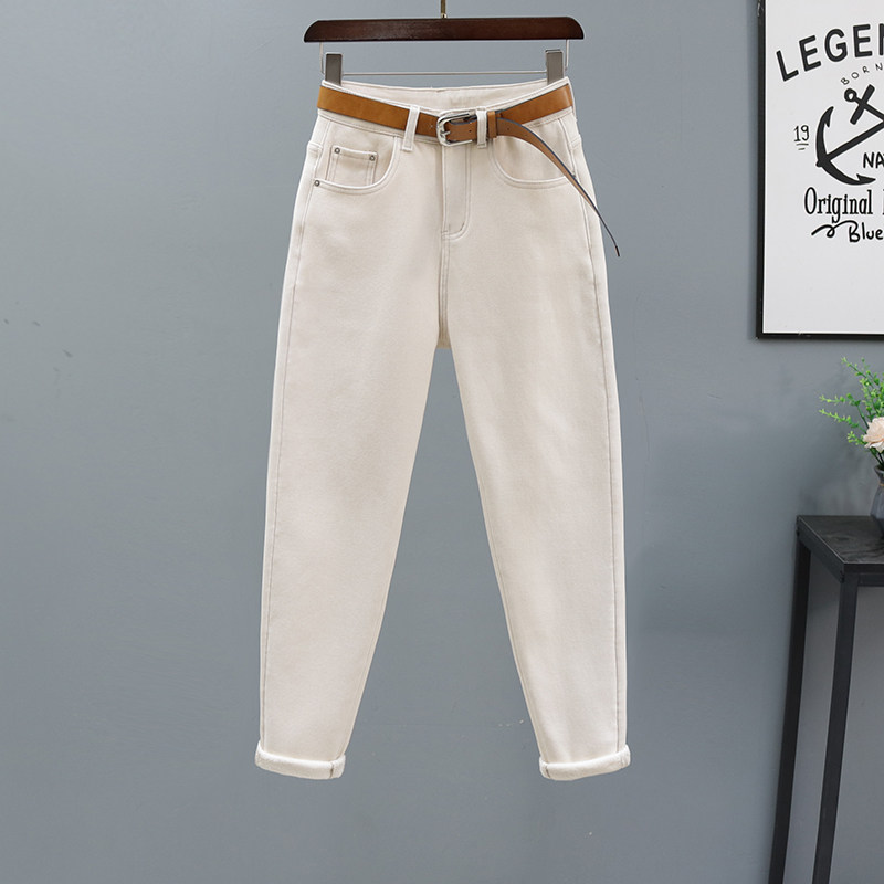 显瘦 百搭宽松休闲小脚罗卜裤 米白色高腰哈伦牛仔裤 女2023秋冬新款