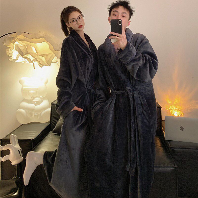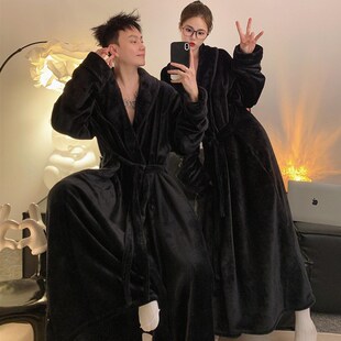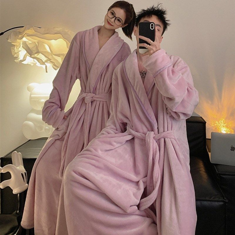 浴袍家居服 大码 睡袍情侣女秋冬季 珊瑚绒加绒加厚保暖高级感加长款