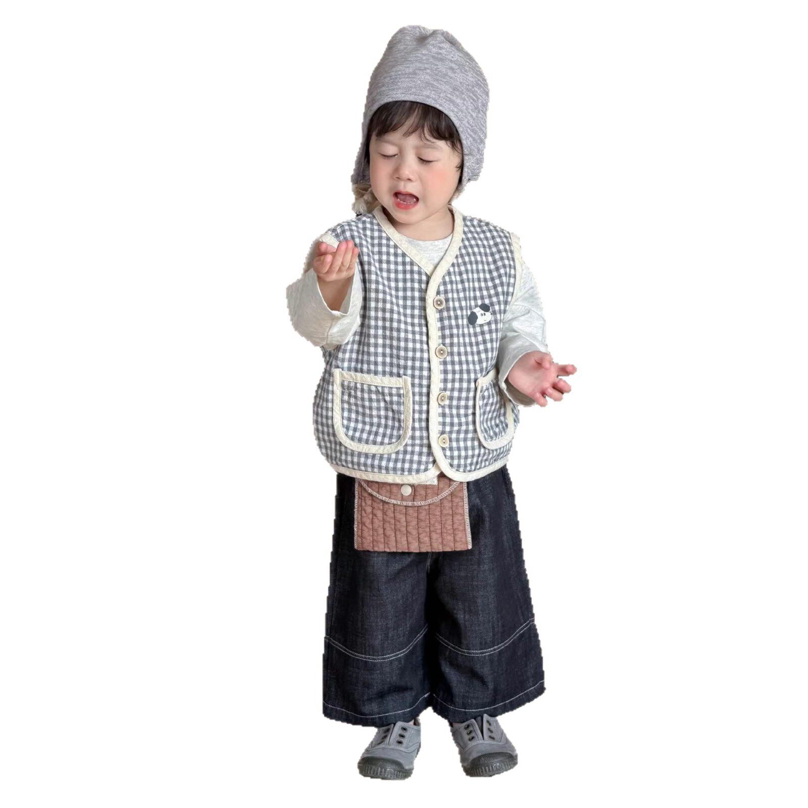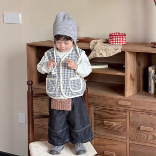 2026新款 衣服男童格子马甲牛仔套装 韩版 春季 加工定制 童装 宝宝春装