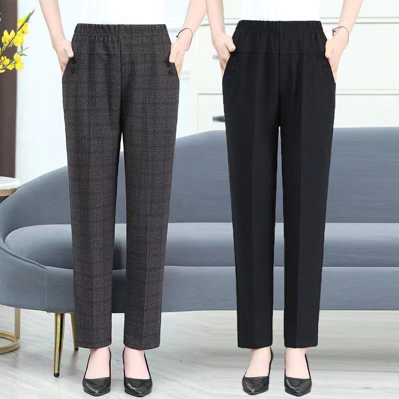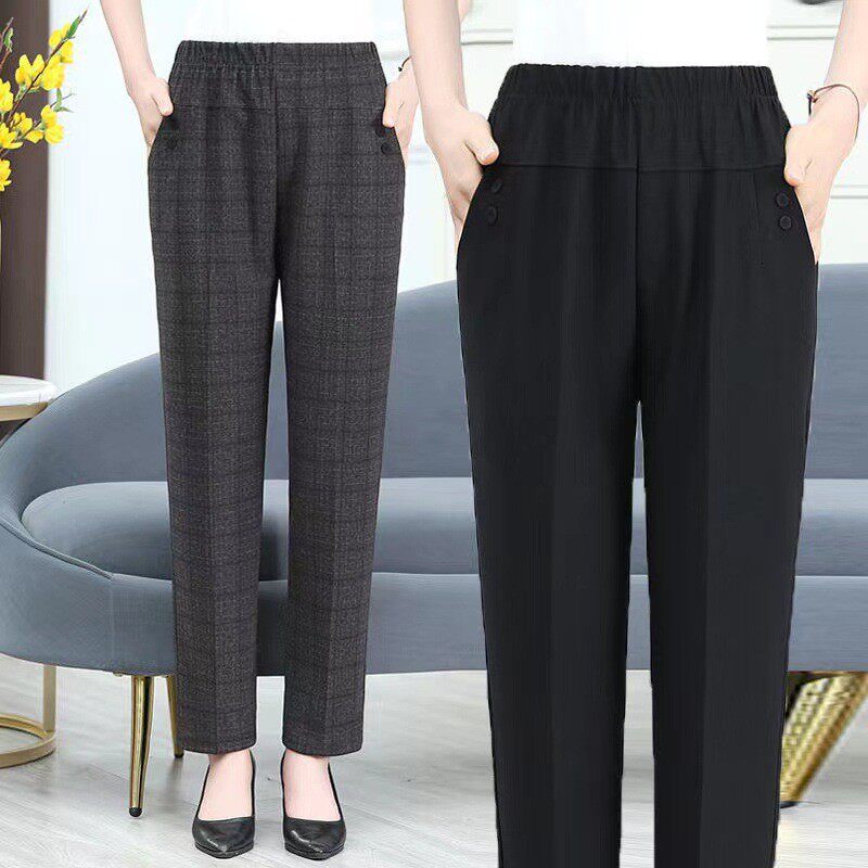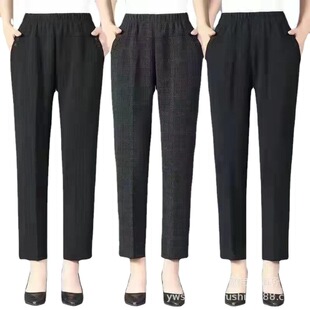 时尚 九分裤 老人裤 春秋韩版 女裤 中年妈妈裤 子乱麻大码 亚麻女哈伦裤