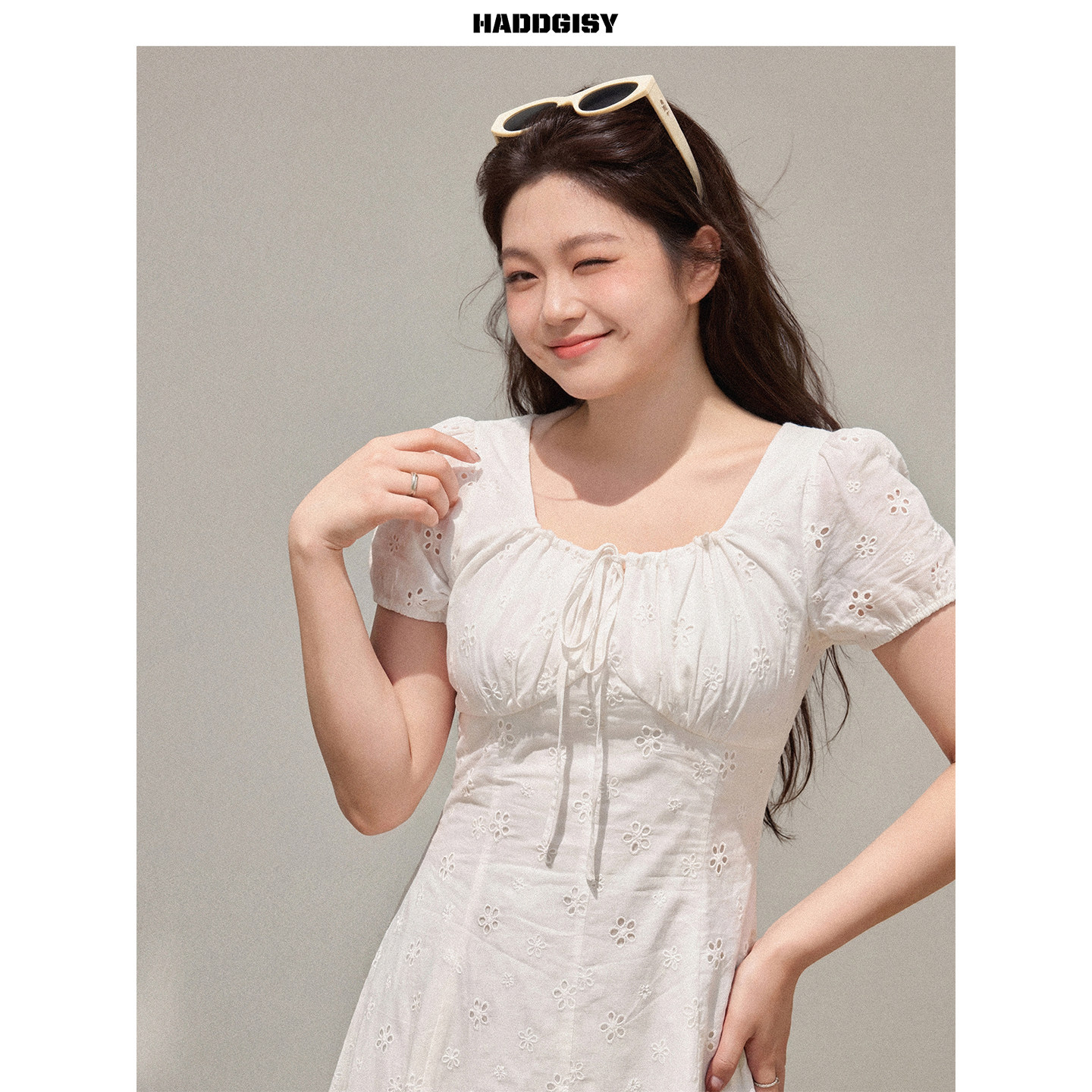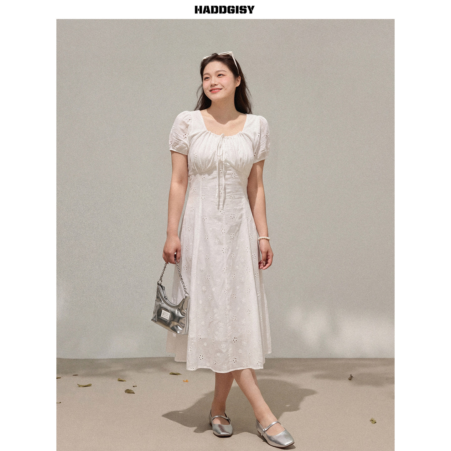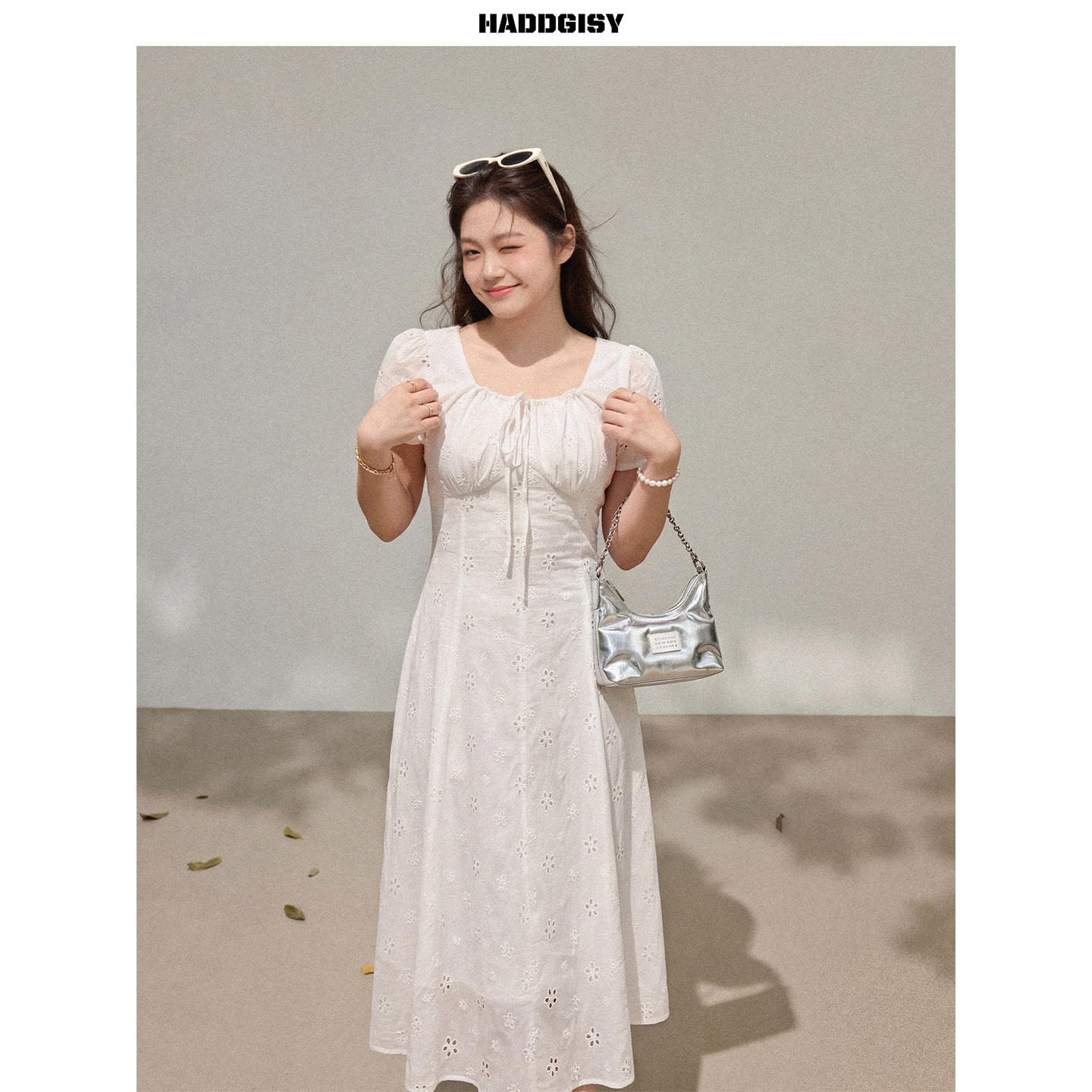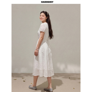米白色钩花连衣裙夏 曾小咸大码 一件8.8折满2件8折 女装