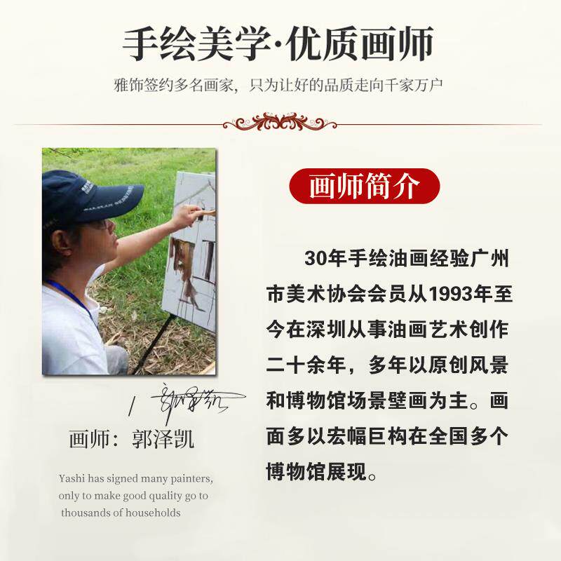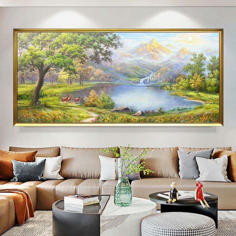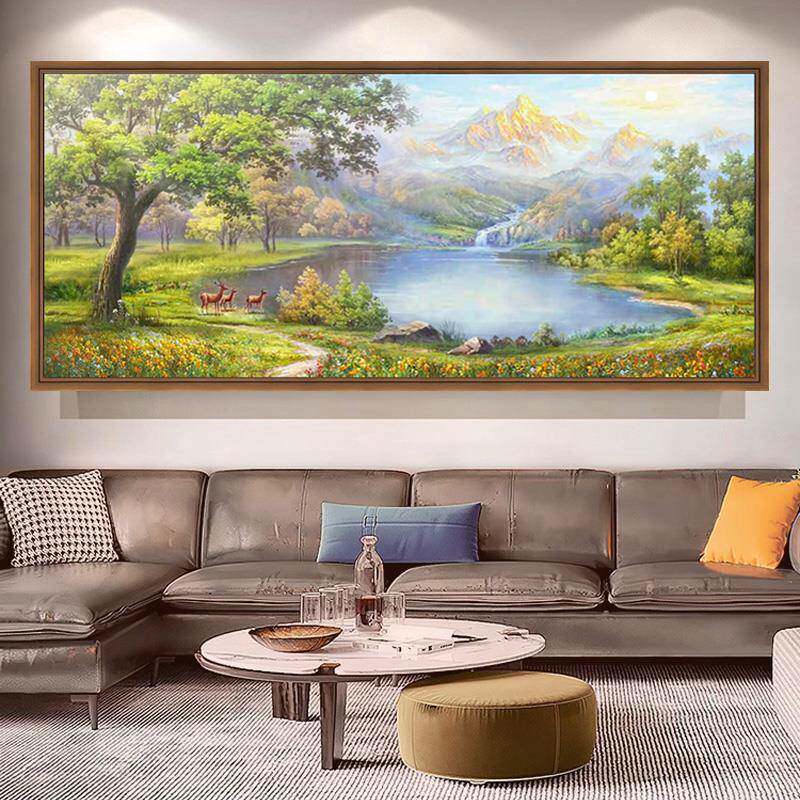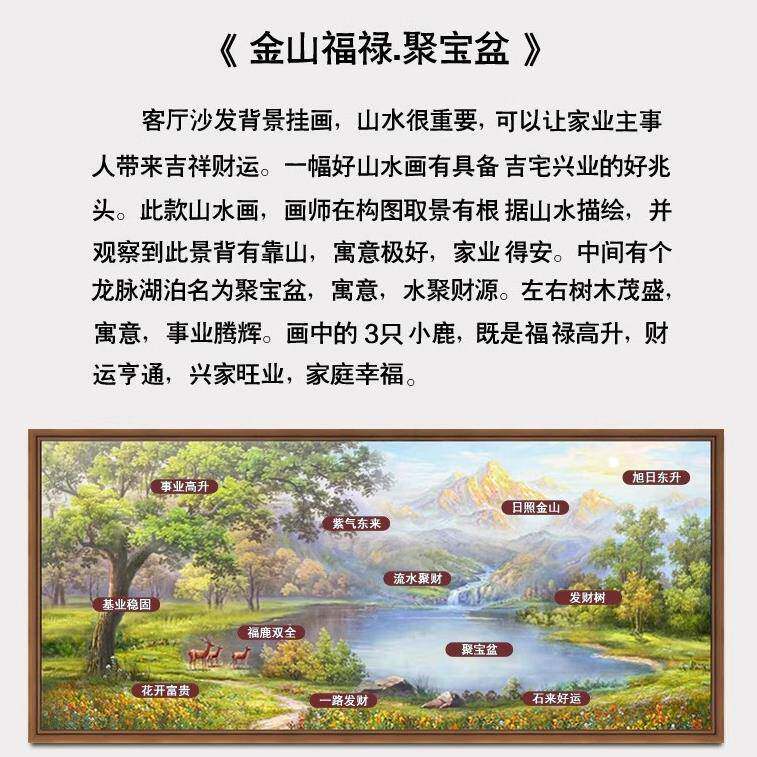 金山聚宝盆手绘油画山水画客厅装 横幅壁画 饰画沙发背景墙挂画美式