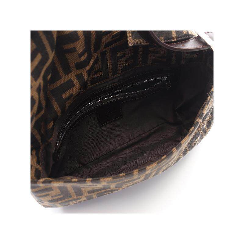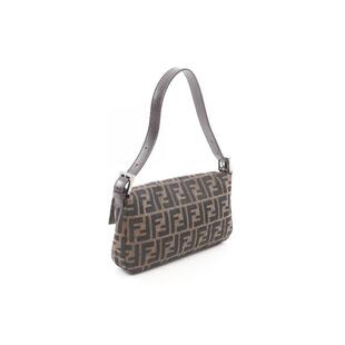 中古Fendi芬迪女包A级95新Mamma Bucket法棍包帆布手提包棕色