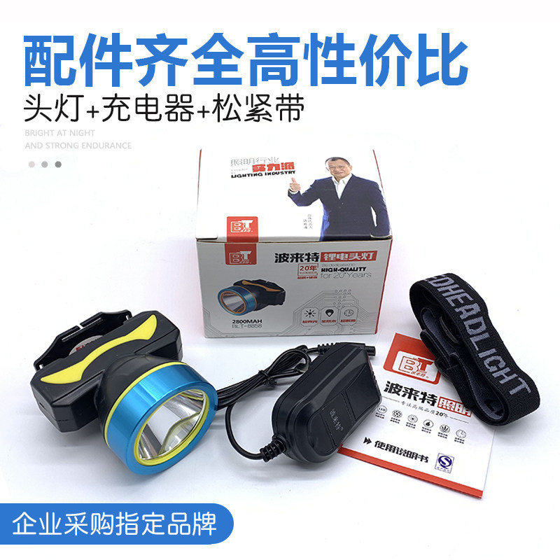 波来特8858头灯超长续航强光充电超亮家用头戴式 超轻小号防水矿灯