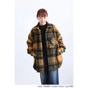 D15072日单冬季 单排按扣翻边领宽松女休闲格子加厚呢子外套 新款