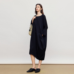 新款 AUM噢姆2026年春季 棉感不规则分割花苞连衣裙女 天猫臻选