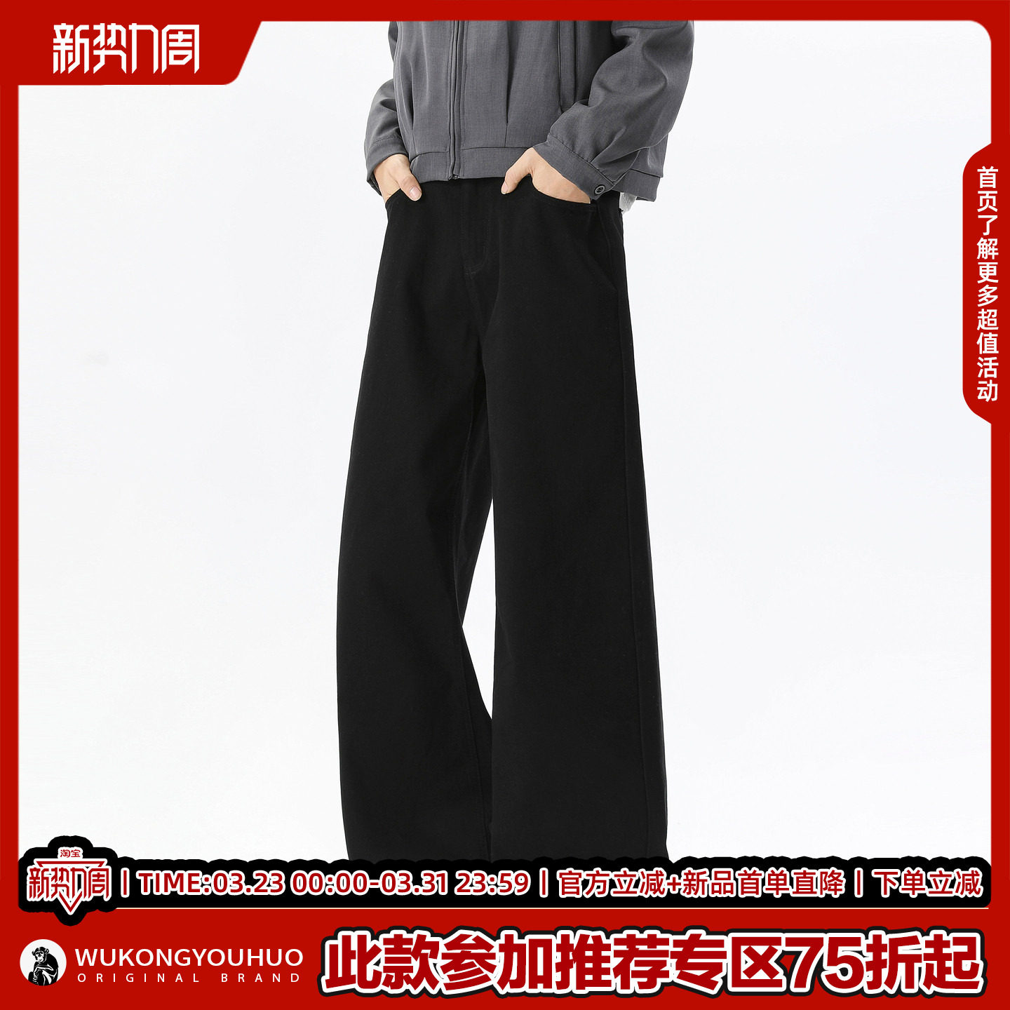 男街头宽松百搭阔腿休闲长裤 裤 复古纯色直筒工装 悟空有货潮牌美式