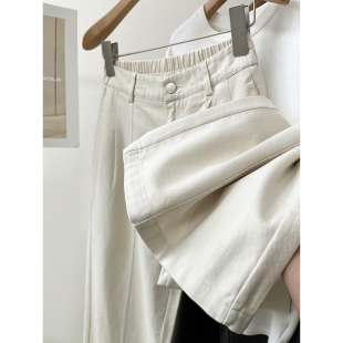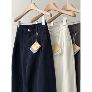 斜纹纯棉茧型休闲裤 长裤 女春季 高腰显瘦拼接阔腿裤 新款 遮胯显瘦